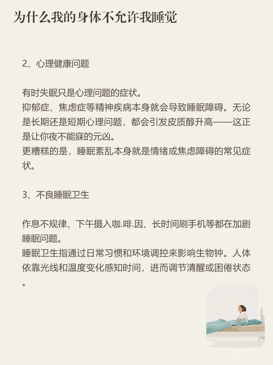 作息不规律、下午摄入咖.啡.因、长时间刷手机等都在加剧睡眠问题。