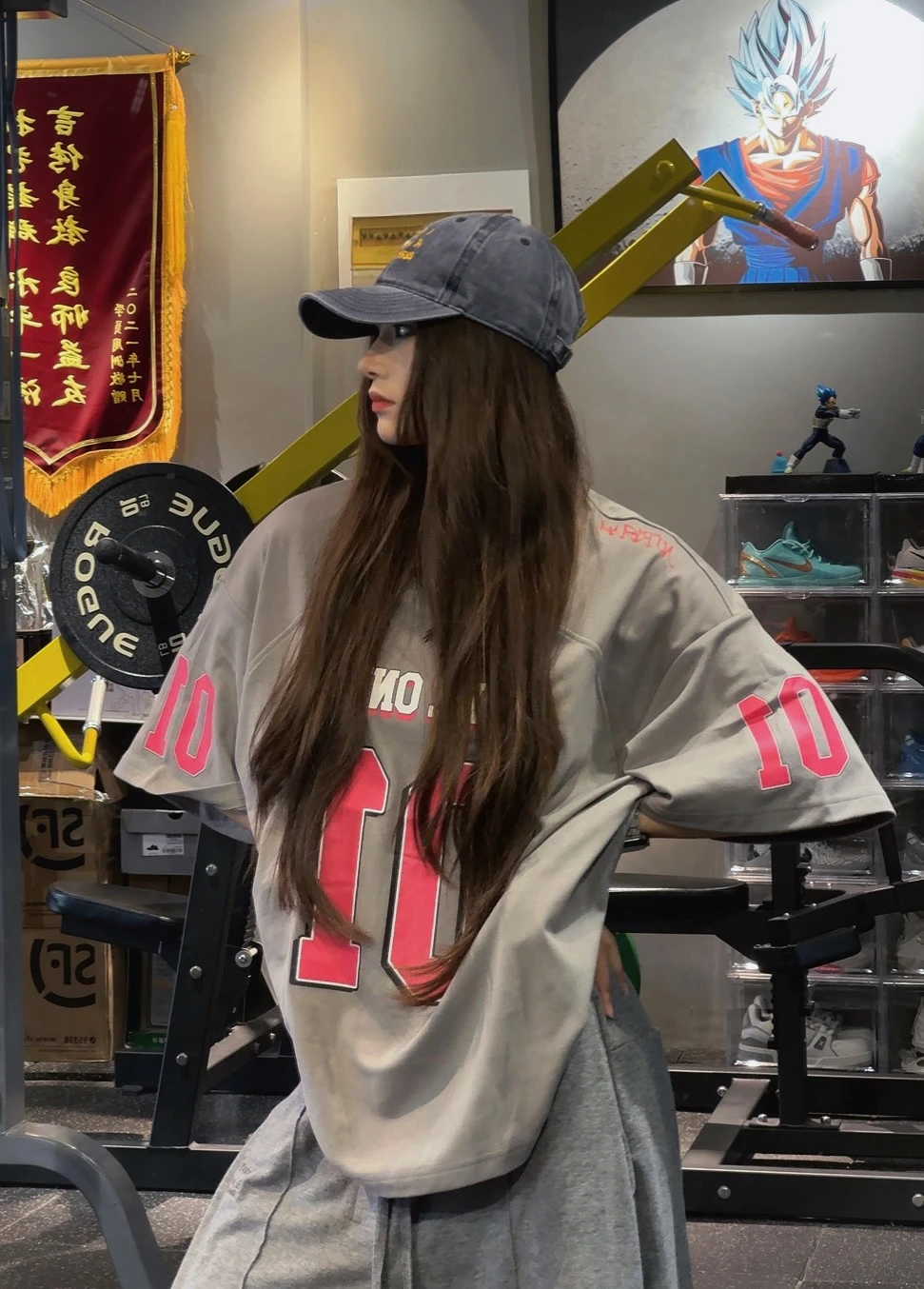 肌肉线条感 做旧灰棒球帽+oversize数字T恤,慵懒又随性 下装换了两种搭法,短裤显腿长,卫裤更舒服 健身房里随便一站都是画报感📸 果然,撸铁和穿搭都要“到位” 毕竟,好看的装备也是坚持的动力呀~