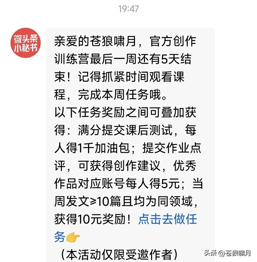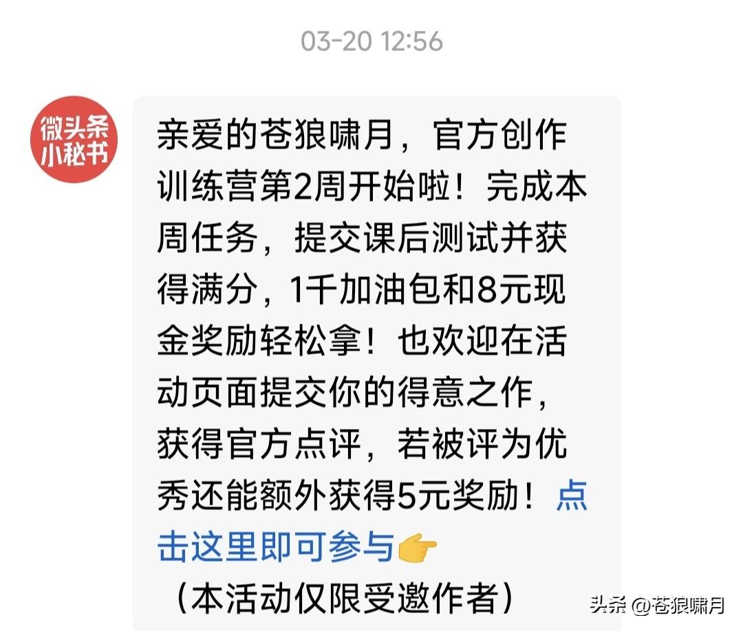 承蒙头条厚爱,多次给苍狼发通知!申请“新锐作者”“领航作者”“精选作者”!邀请参加“创作训练营”,以“九边”“戴建业”等为模板的“全民写作大赛”。 苍狼尝试过“三种作者”,觉得不适应!也看了“训练营”视频,“九边”“戴建业”的文章,觉得不合自己的路子。因此均无法参加,只能怪自己愚笨吧! 苍狼觉得平台如此邀请,是对本人看重与厚爱,但实话实说,苍狼不喜欢受约束,只想在法律法规框架内,自由表达个人观点,为国建言为民请命! 最后对平台提一个建议:无论参不参加“训练营”,参没参加“全民写作大赛”?是否“新锐”“领航”“精选”作者,平台都应该一视同仁,给予平等对待! …………