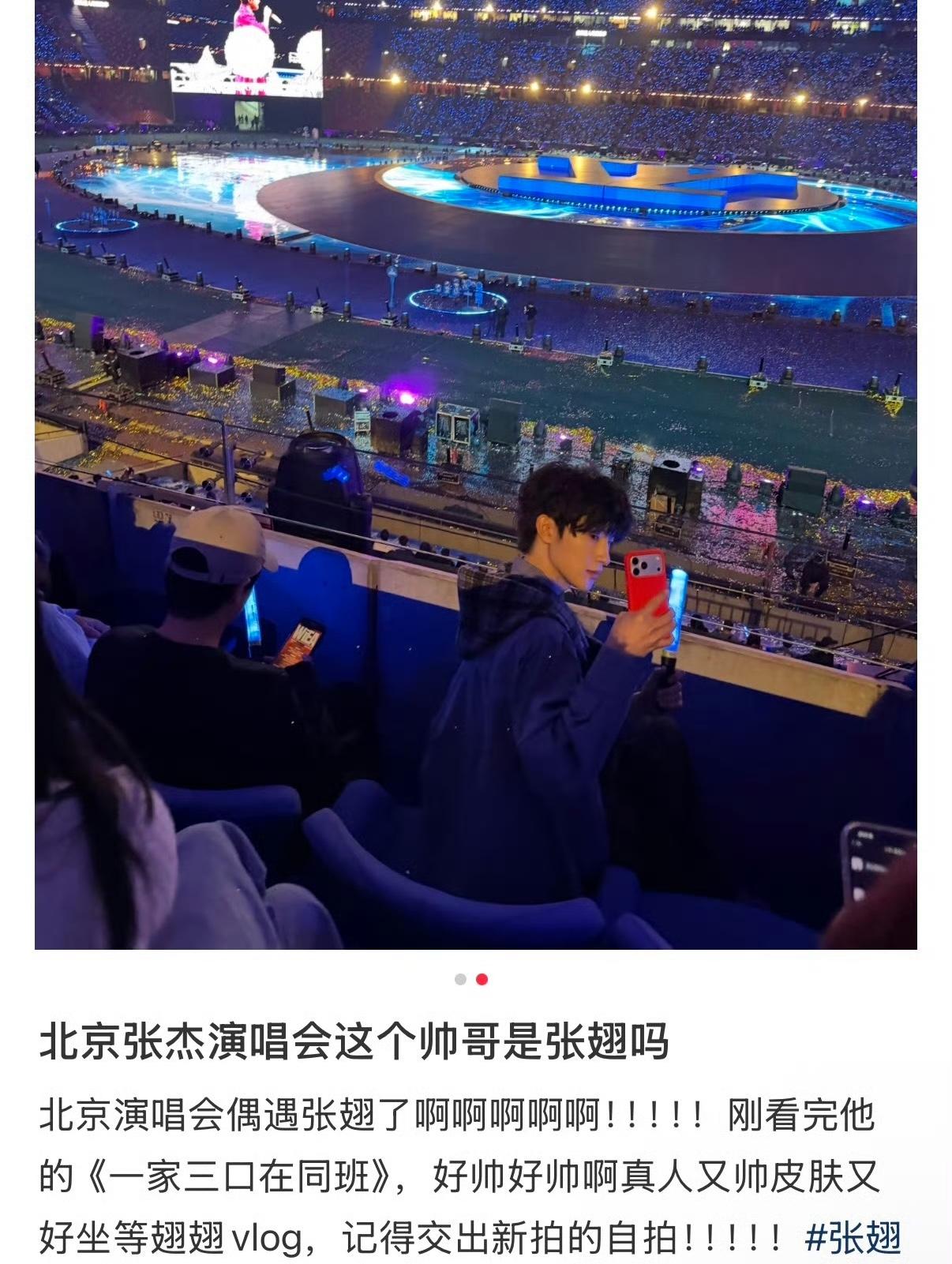 张杰鸟巢演唱会,蔡国庆和张翅来咯! 果然还是张杰。 演唱会上星光熠熠,来了很多明星。 蔡国庆以观众身份现身VIP区,据说他是张杰鸟巢演唱会的常客。 张翅也以卷毛休闲造型坐在观众席。 另外,何炅、黄霄云、宋茜、佟丽娅和罗云熙等也都到场支持。