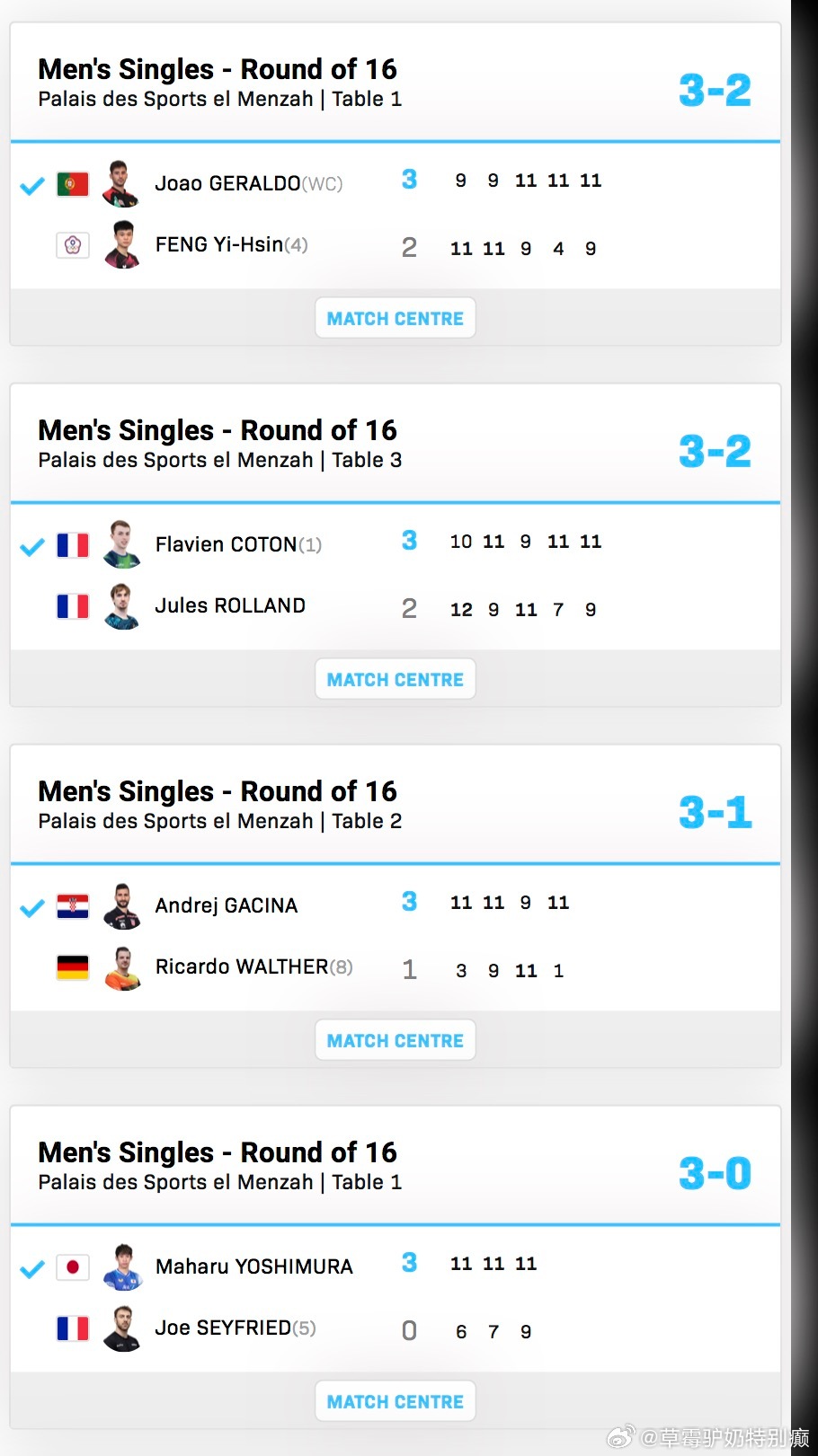 2026wtt突尼斯挑战赛男女子单打16-8吉村真晴3-0塞弗里德加齐纳3-1沃尔瑟科顿3-2罗兰德吉尔拉多3-2冯翊新