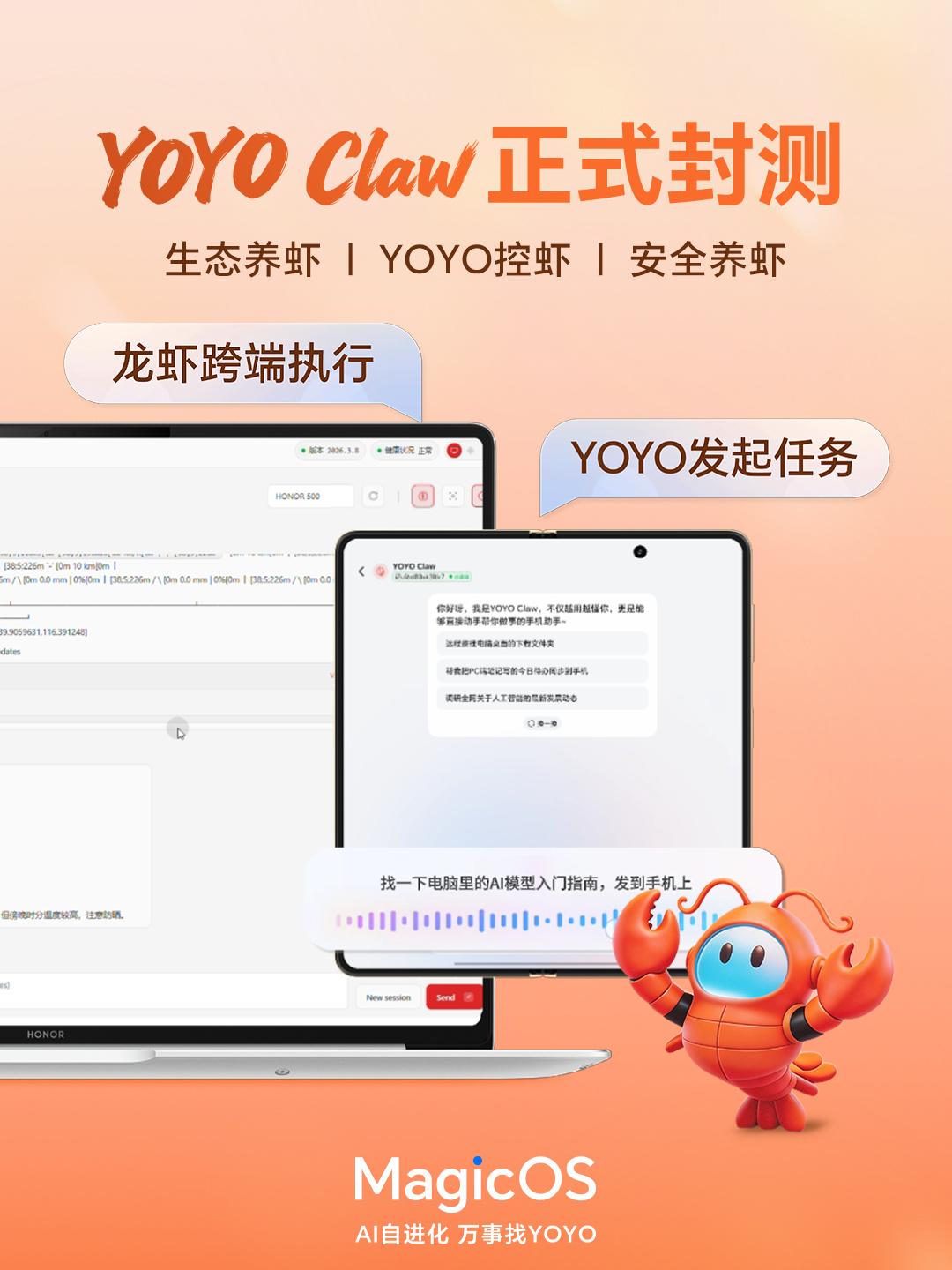 刚刚看到荣耀产品线总裁方飞表示,荣耀龙虾宇宙要和大家见面了,YOYO Claw今天开启封测,简单来说,这个是荣耀首款基于OpenClaw龙虾开源框架,开发的AI智能体,也是新一代YOYO助手,方总表示并不仅仅简单互动,可以理解、执行、完成小伙伴们的指令,看起来越来越智能,能不能提升生活品质,高低我得试一试 畅聊数码新品 数码资讯