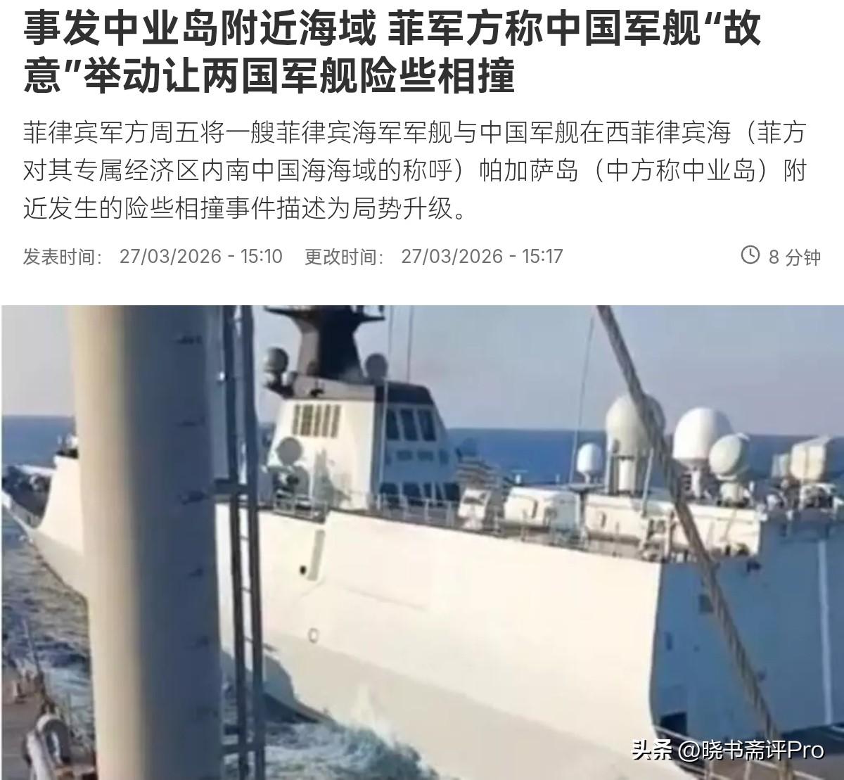 菲律宾非常愤怒!菲律宾方面一口咬定,中国军舰“故意”险些让两国军舰相撞!3月28日,根据法新社报道,菲律宾武装部队西菲律宾海事务发言人特立尼达表示,3月25日,在中业岛附近的一次海上行动中,一艘解放军海军054A型导弹护卫舰执行了一次危险的机动动作,菲海军坦克登陆舰“本格特”号成功避免了潜在的碰撞。 这一发生的事件是解放军海军一艘军舰对我们的一艘登陆舰、又称坦克登陆舰实施的“胁迫性和侵略性”行动。这种行为既不专业也不安全。文明世界绝不容忍这种行为。军舰之间的遭遇已经很久没有发生,这次事件已经标志着事态升级。很显然,对于刚刚发生的军舰险些碰撞事件,菲律宾非常的不满,并认为这是局势的升级。 不过,我们倒是想问的是,中业岛是中国的领土,菲律宾为什么派出军舰出现在中业岛附近海域呢?菲律宾主动挑衅在先,我们反制在后,菲律宾怎么不拿着镜子,照照自己。挑衅被反制之后,跳出来大喊大叫,但这种毛病,我们显然不会惯着。事实上,菲律宾总统小马科斯一方面声称要重置中菲关系,一方面不断制造摩擦。 菲律宾一方面想要经贸合作要好处,稳定能源,化肥的供应,一方面又要充当美国挑衅我们的地缘棋子,跟我们来这种两面手法,自以为算盘打的非常精明。菲律宾若想要局势不失控,就应该有自知之明。我们有各种对付菲律宾的办法,真是要撕破脸皮,菲律宾最终只能是吃不了兜着走。一句话,菲律宾别以为我们的忍耐是无限的。
