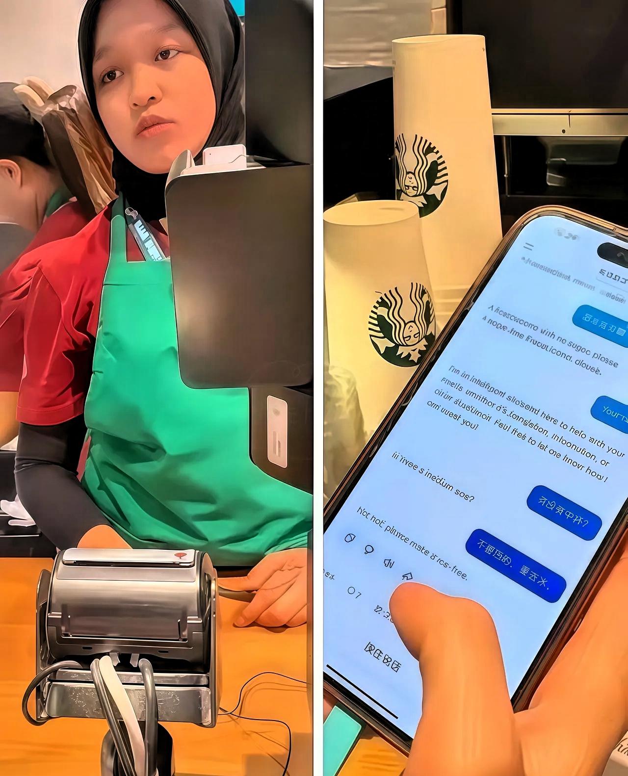 广东妹子去吉隆坡机场买星巴克,因为英语烂,全程拿手机翻译客客气气点单。 谁能想