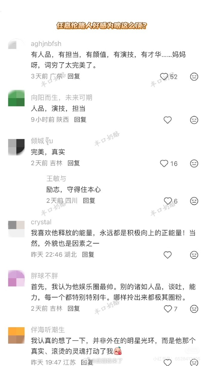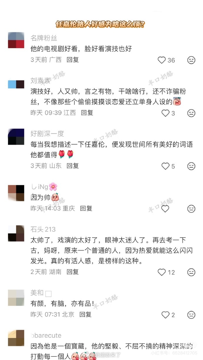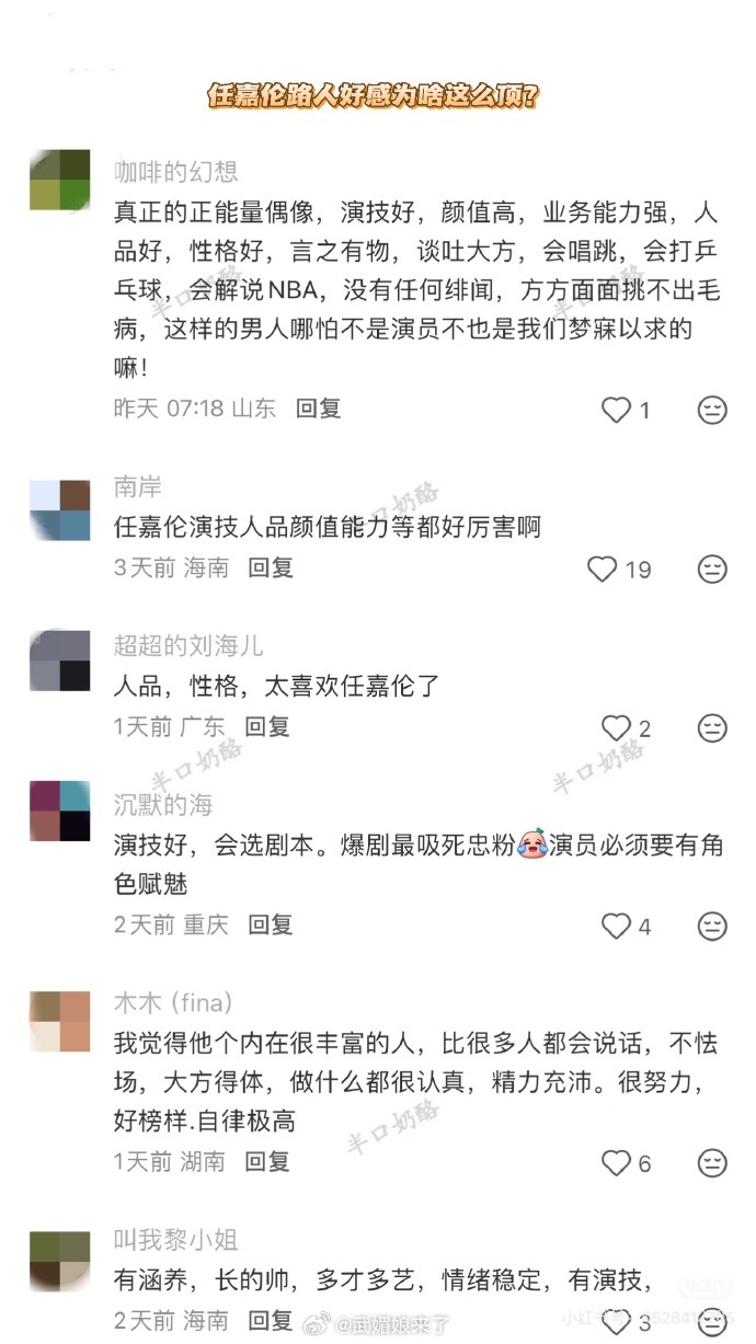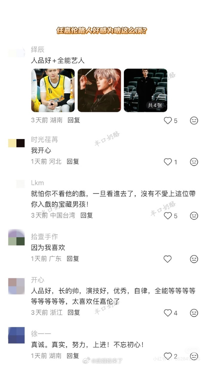任嘉伦这路人好感这么顶真不是没道理的——人品正,不立人设不作妖。业务能力更没话说,演技好,爆剧一部接一部,而且唱跳俱佳,打篮球、解说NBA都超夯的!