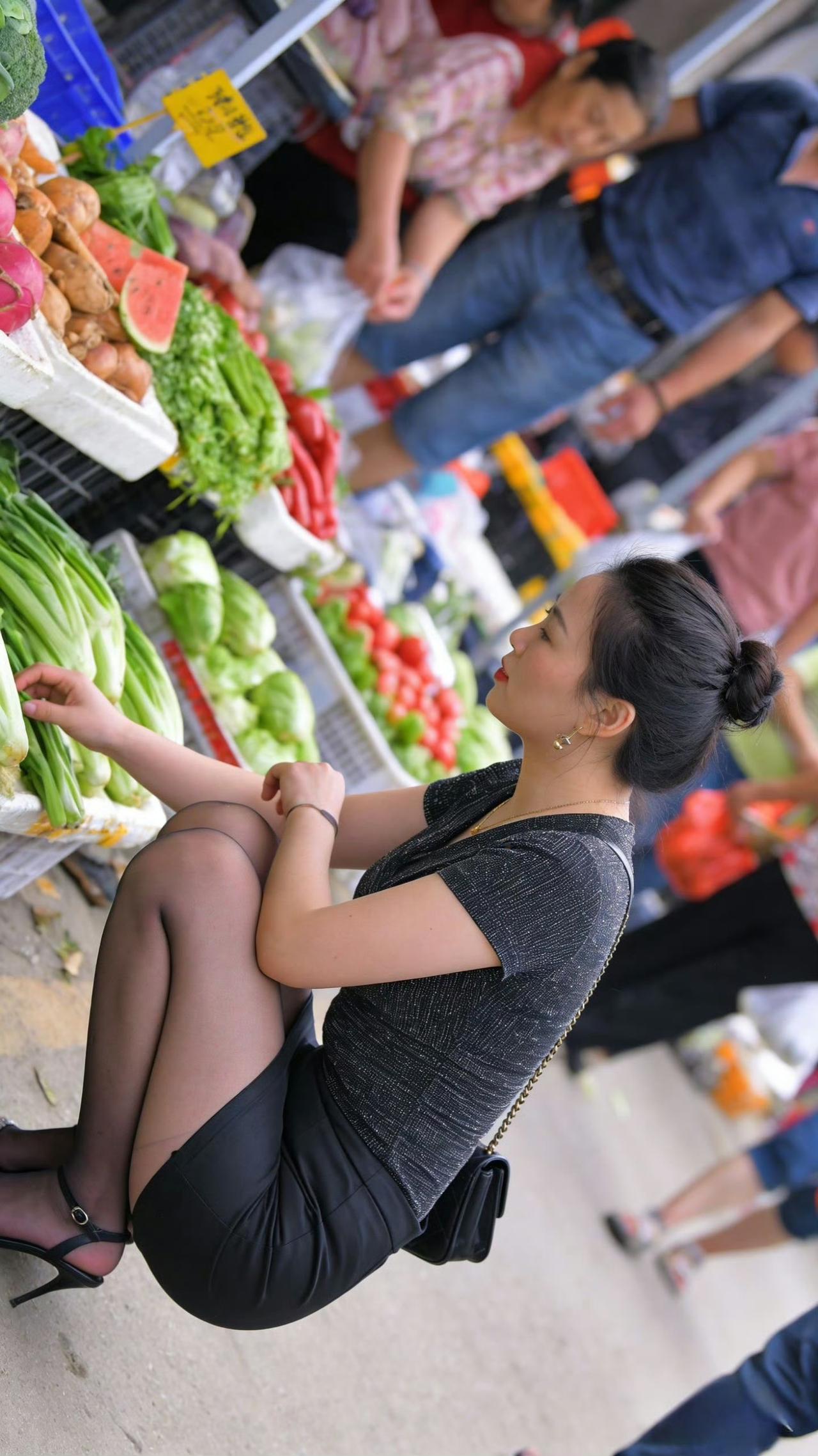 都市丽人街市买菜,时尚穿搭引人注目!🌱👗💃