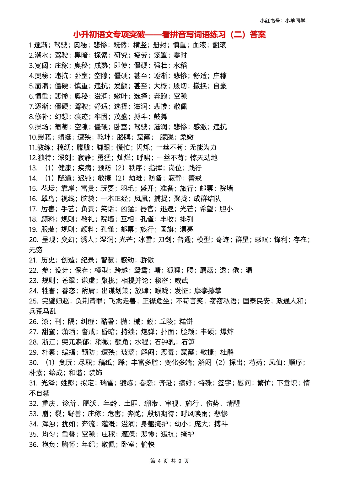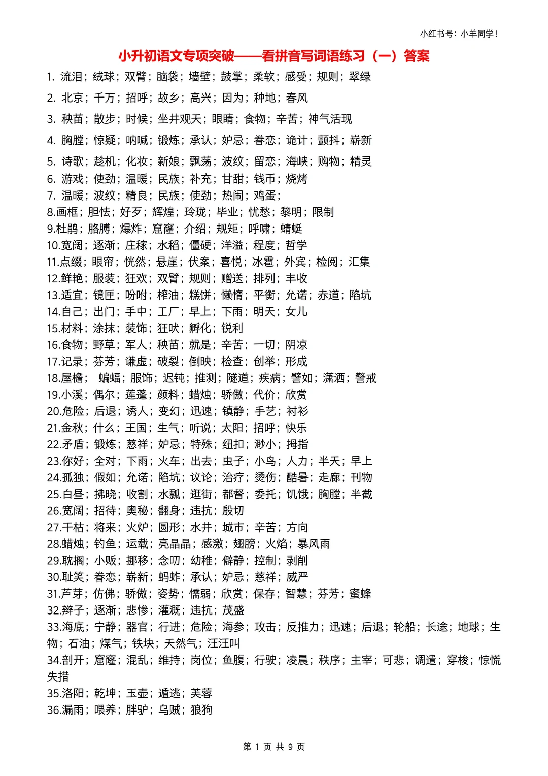 小升初娃必冲📢 看拼音写词语专项练习