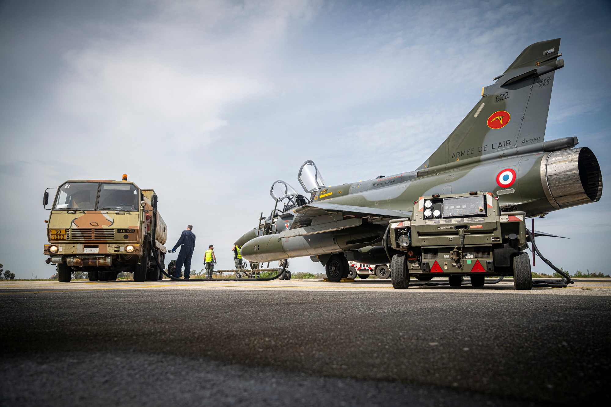 法国的"幻影2000D"战斗机尤其参与了COMAO(复合空中作战)行动,即整合多种机型协同执行的作战行动。在此次演习中,由约30架飞机组成"友军"部队,而"敌军"部队则由约20架飞机组成。在此框架下,作为"友军"部队成员的法国机组人员的任务是针对敌方目标(如指挥中心或通信中继站)执行空对地打击。为此,"幻影2000D"战斗机得到了盟军战斗机的保护,这些战斗机配置用于应对空中威胁(即"清场"机)和/或压制敌方防空系统(包括面对空防御系统)。