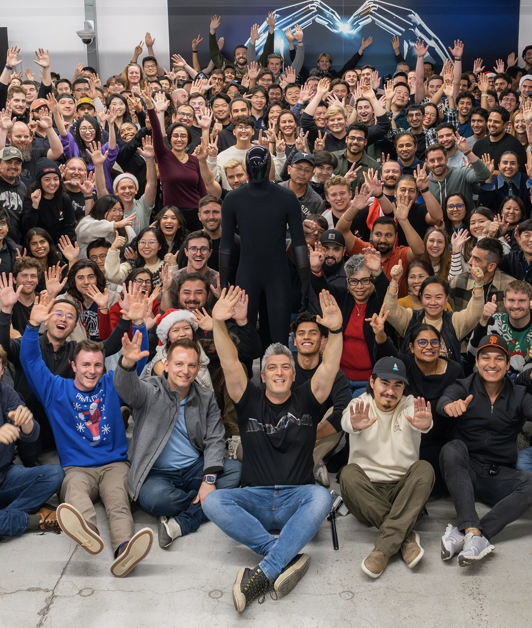 Optimus 团队合影,中间那个机器人疑似 v3。