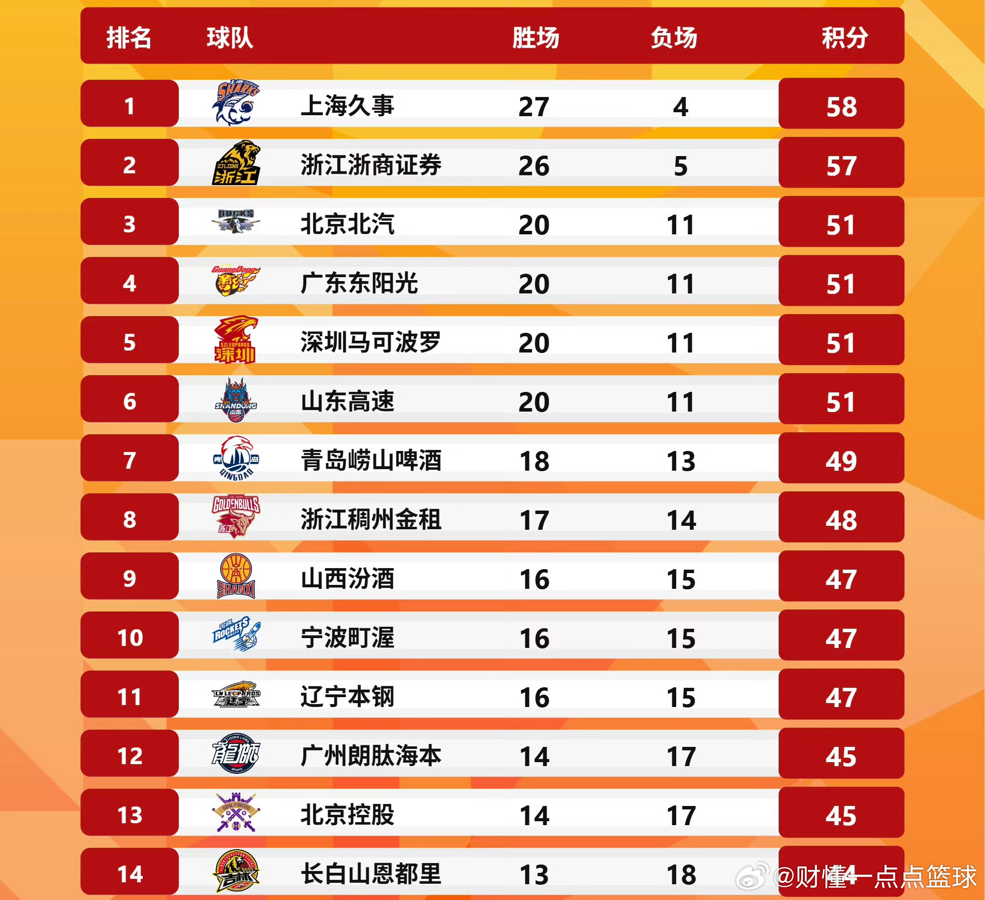 广东宏远陷“死亡卡位区”:前31轮排名暗藏巨大危机CBA常规赛前31轮比赛全部打完,从积分榜来看,广东宏远以20胜11负积51分,和北京北汽、深圳马可波罗、山东高速完全同分,挤在第3到第6的位置。如今球队已经没有任何容错空间——只要输一场,就可能直接从第4掉到第6;赢一场也未必能稳进前3,因为对手同样有机会追分反超。上海男篮(27胜4负)和广厦(26胜5负)已经建立起7-6个胜场的领先优势,稳稳的占据第一、二名。这意味着:广东宏远男篮在季后赛前无法通过高排名获得更轻松的对阵,反而要在首轮就面临硬仗,甚至可能提前遭遇上海或广厦这样的顶级强队。如今2到12的排名可谓是乱成一锅粥了!从今天开始,每一场比赛都是刺刀见红的卡位战,也同时影响着每支球队的最终排名。如果球队不能在剩余赛程中稳住状态、抢下关键胜利,不仅会丢失主场优势,甚至可能在季后赛首轮就提前出局,这对志在冲冠的广东宏远来说,无疑是巨大的挑战。广东宏远广东宏远