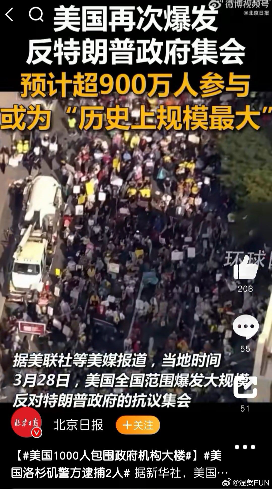 美国全国爆发反对特朗普政府集会信不信原来特朗普铁杆支持者,都去参加这个反对集会了?因为大家是因为他的孤立主义选他上台,现在他为了以色列把美国利益损失卷进不相干的战争,原来的支持者肯定不答应。