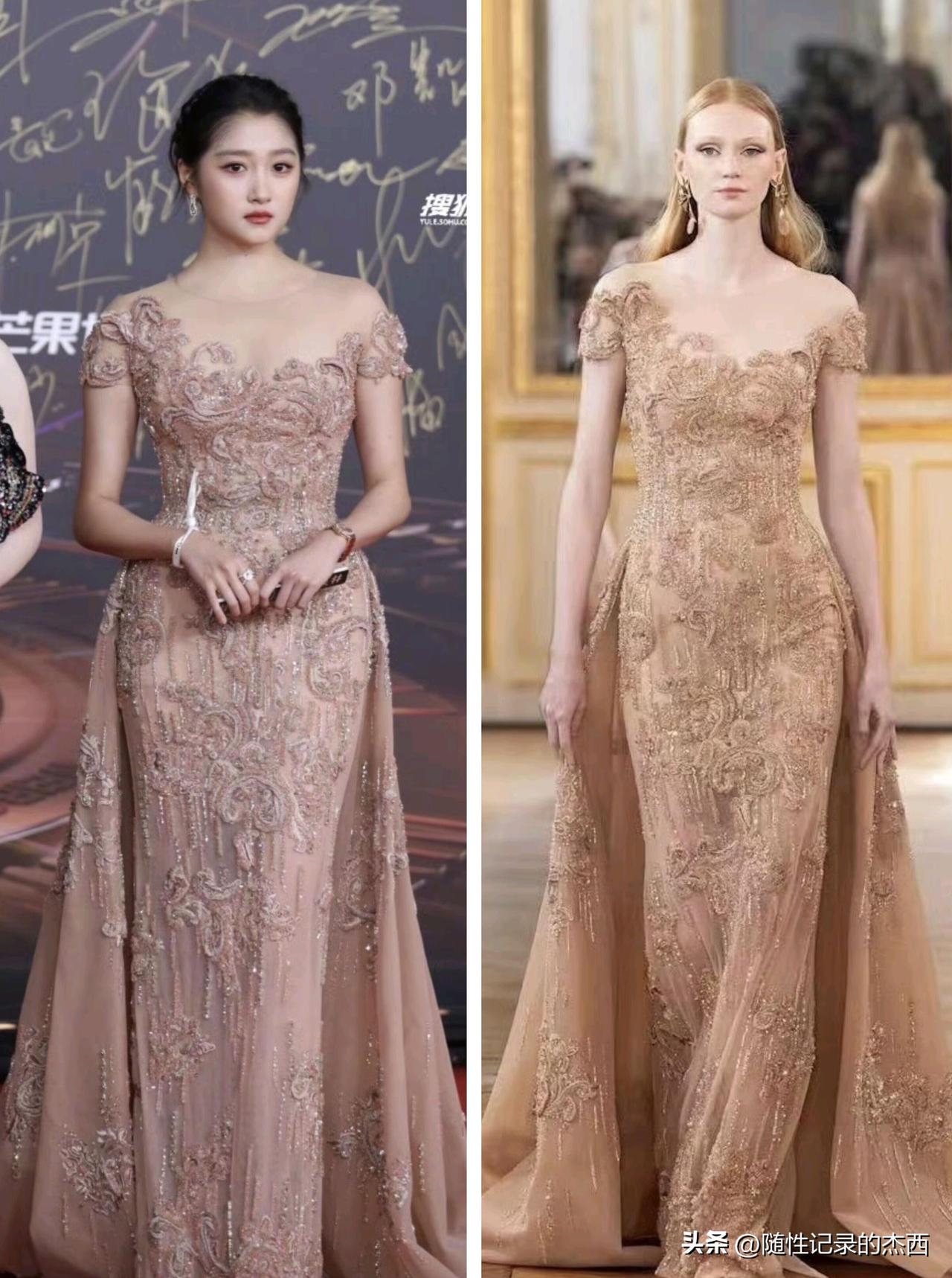 她的脸蛋漂亮脸小,身材高挑,腿长又直,按照平时女明星穿礼服出场的样子看都会是妥妥的美人胚子,怎么关晓彤穿上礼服就很一般呢,这到底哪里出问题,看着还没有右边的模特穿的美。
