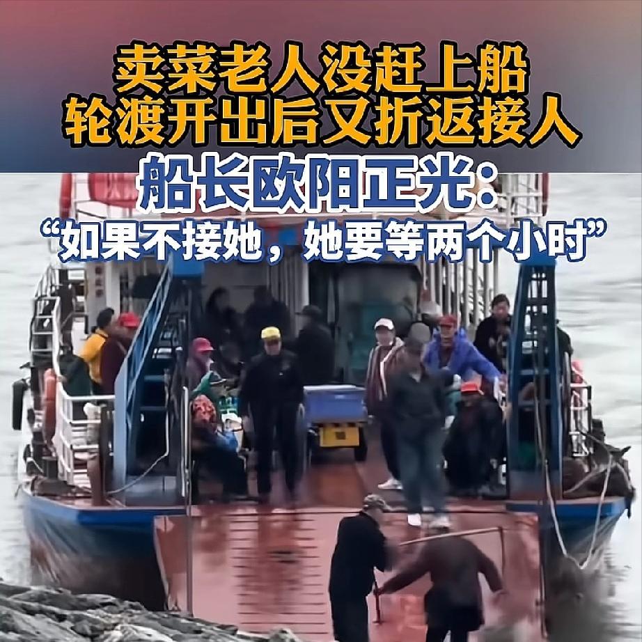 轮渡开走又返回接上 举手之劳本平常, 小小善举荡春光。 一家生活一肩挑, 卖菜轮渡须过江。 小跑蹒跚步踉跄, 迟到莫怪老大娘。 耄耋本该享生活, 一人卖菜家供养。 好人好报谢船长, 春风拂面暖洋洋。 为善不在大与小, 一石千浪万荡漾。