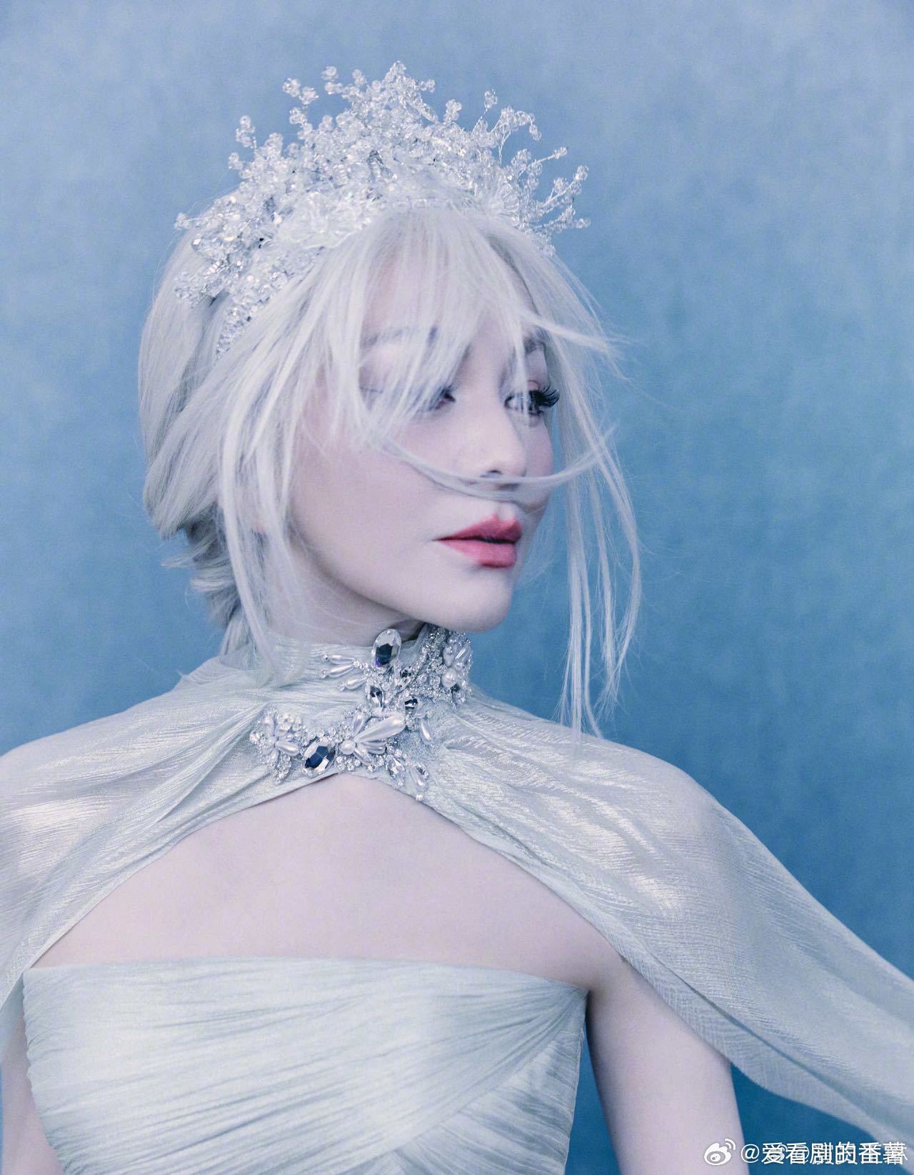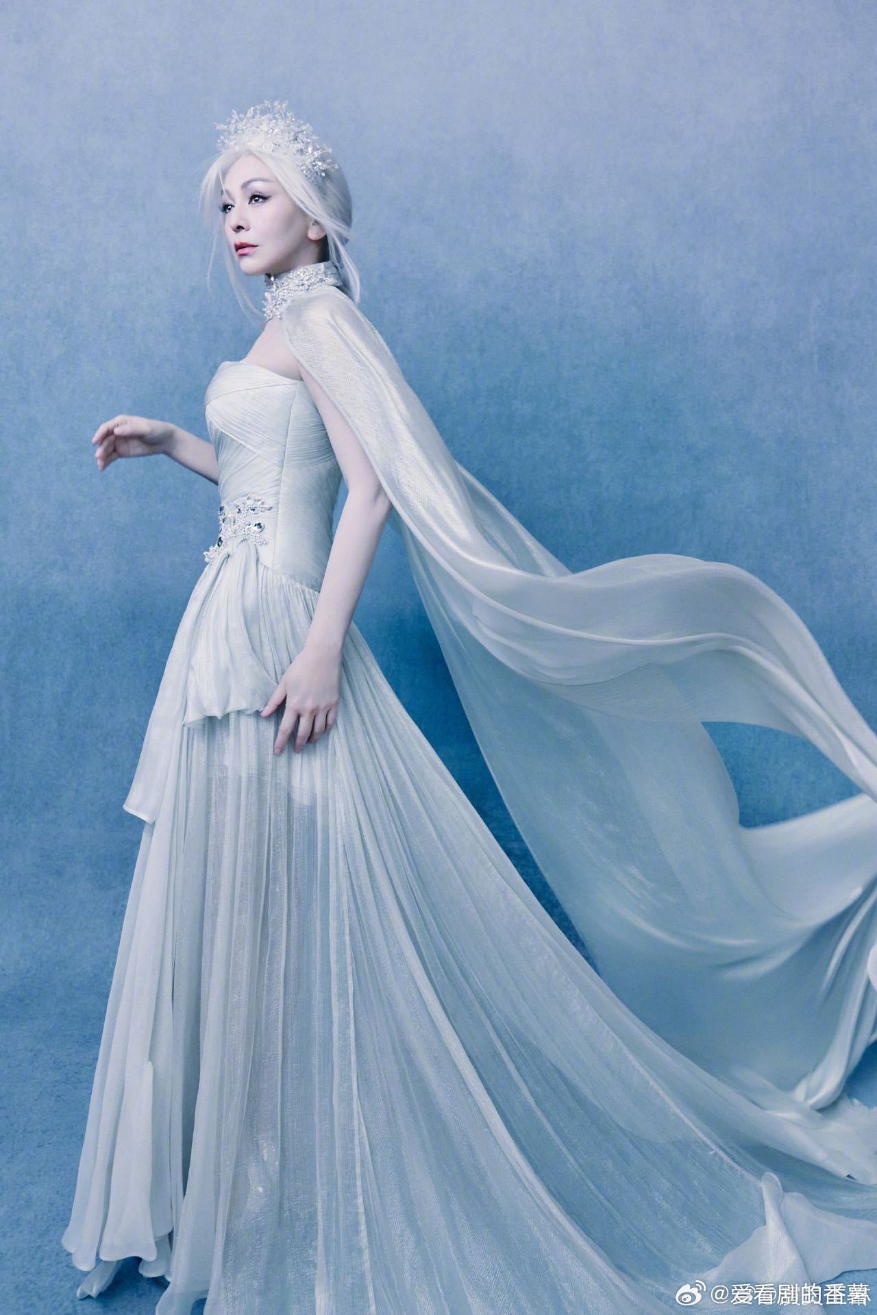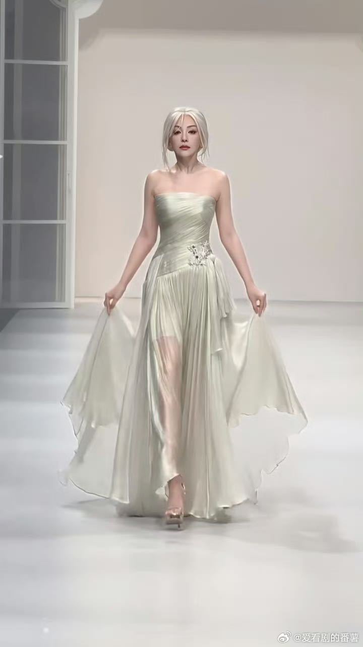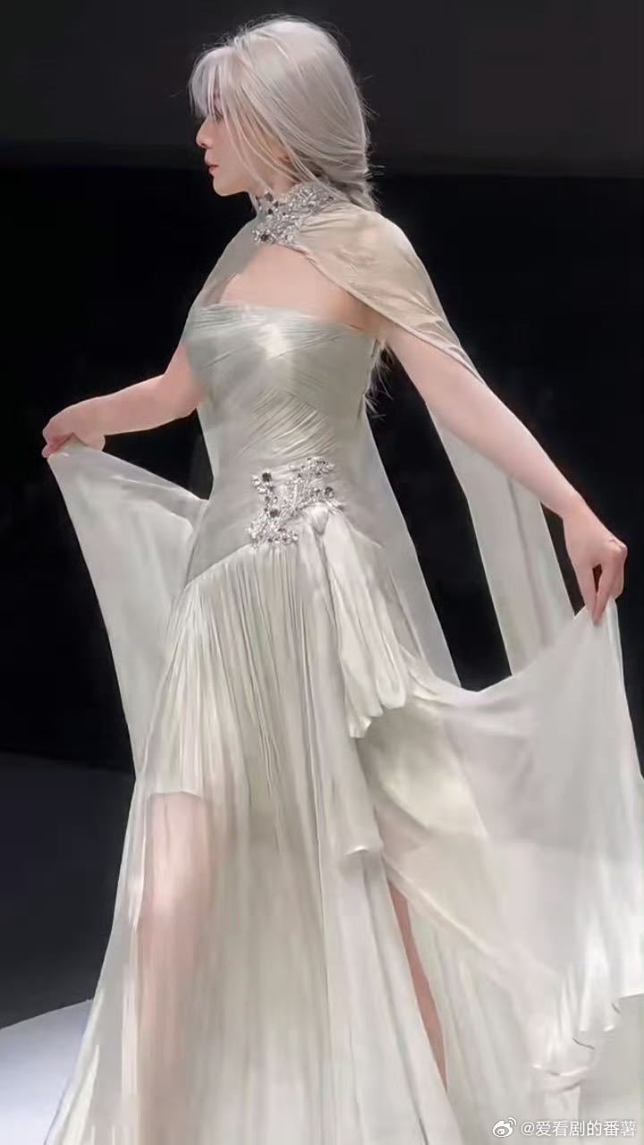 55岁雪姨走秀状态雪姨银发真的不敢信55岁!雪姨银发走秀气场绝了,银冠披风加持优