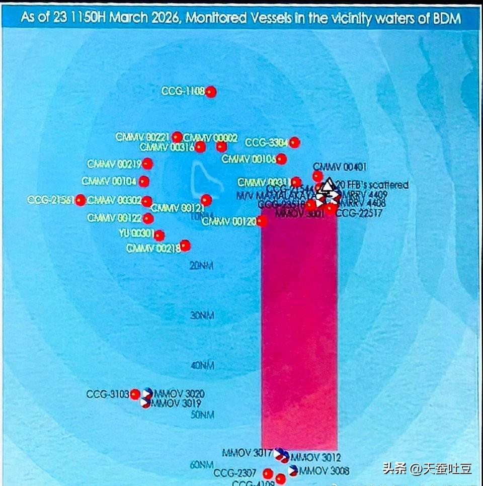 【海警】3月23日,中国海警在我黄岩岛海域发布限时离开通告,要求菲律宾靠近我黄岩岛以东至东南周边30海里内的船只在今日中午11点至下午18点前离开,否则将面临强制清场。自3月21日早晨以来,包括菲海警4408、4409艇、农业部水产资源局“玛玛拉卡亚”号渔业辅助船和约6艘30米渔政船非法聚集在我黄岩岛周边海域纠集菲20余艘渔船寻衅滋事。中国海警陆续集结相关力量依法拦截驱离。中方黄岩岛领海 非法闯入黄岩岛