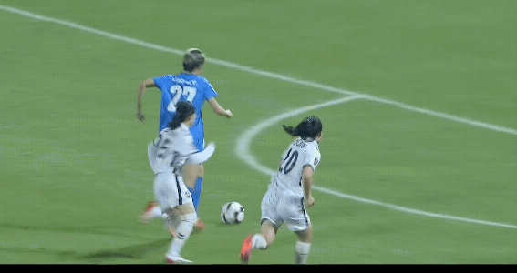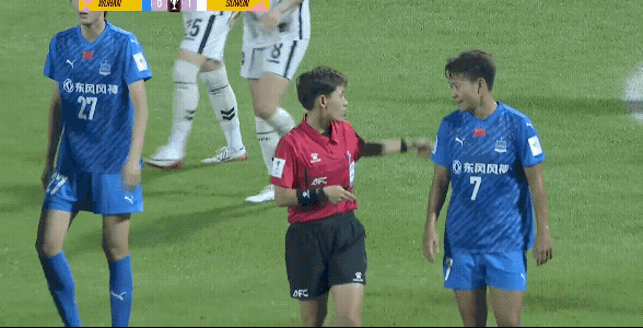 武汉女足这个球被裁判判罚进球越位无效,但是传球时候是韩国水原女足队员先碰到球,难