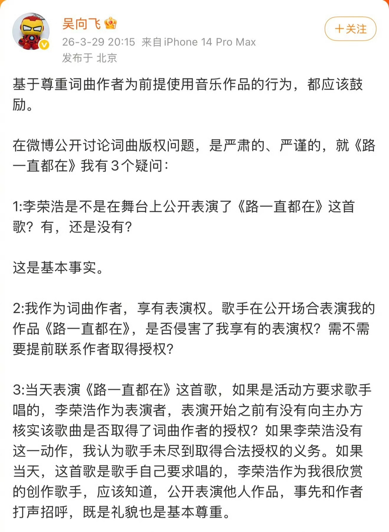 李荣浩和律师都在等吴向飞,两人在这隔空喊话,没有联系方式吗?吴向飞喊话李荣浩道歉