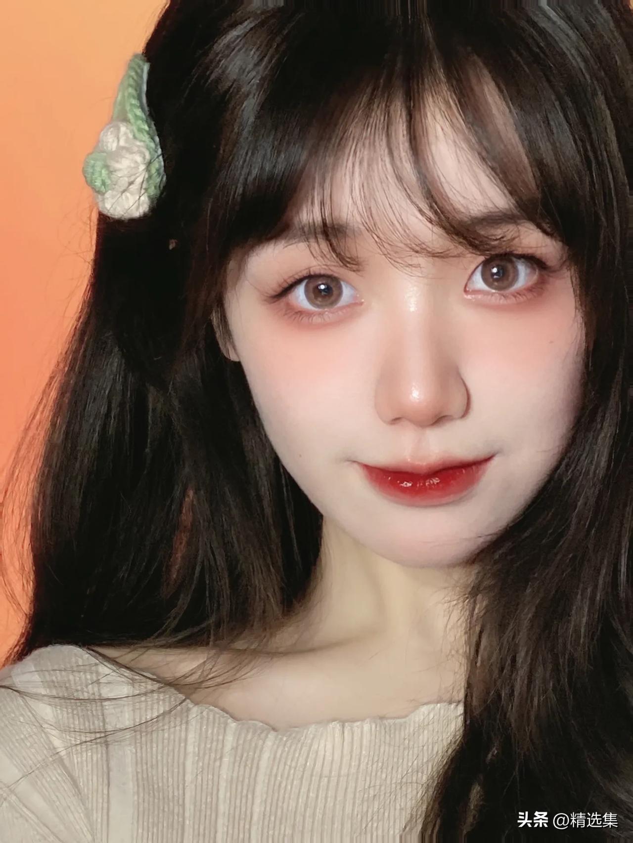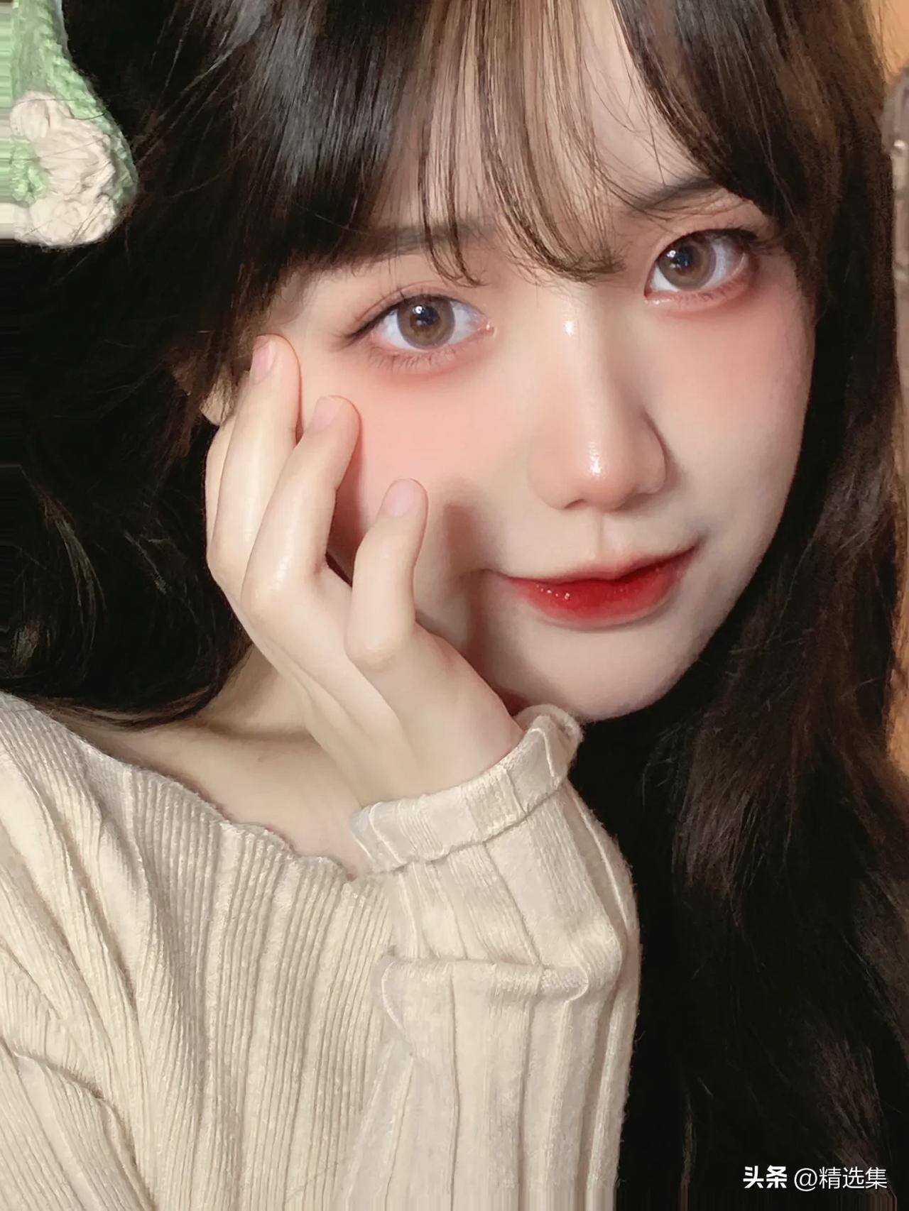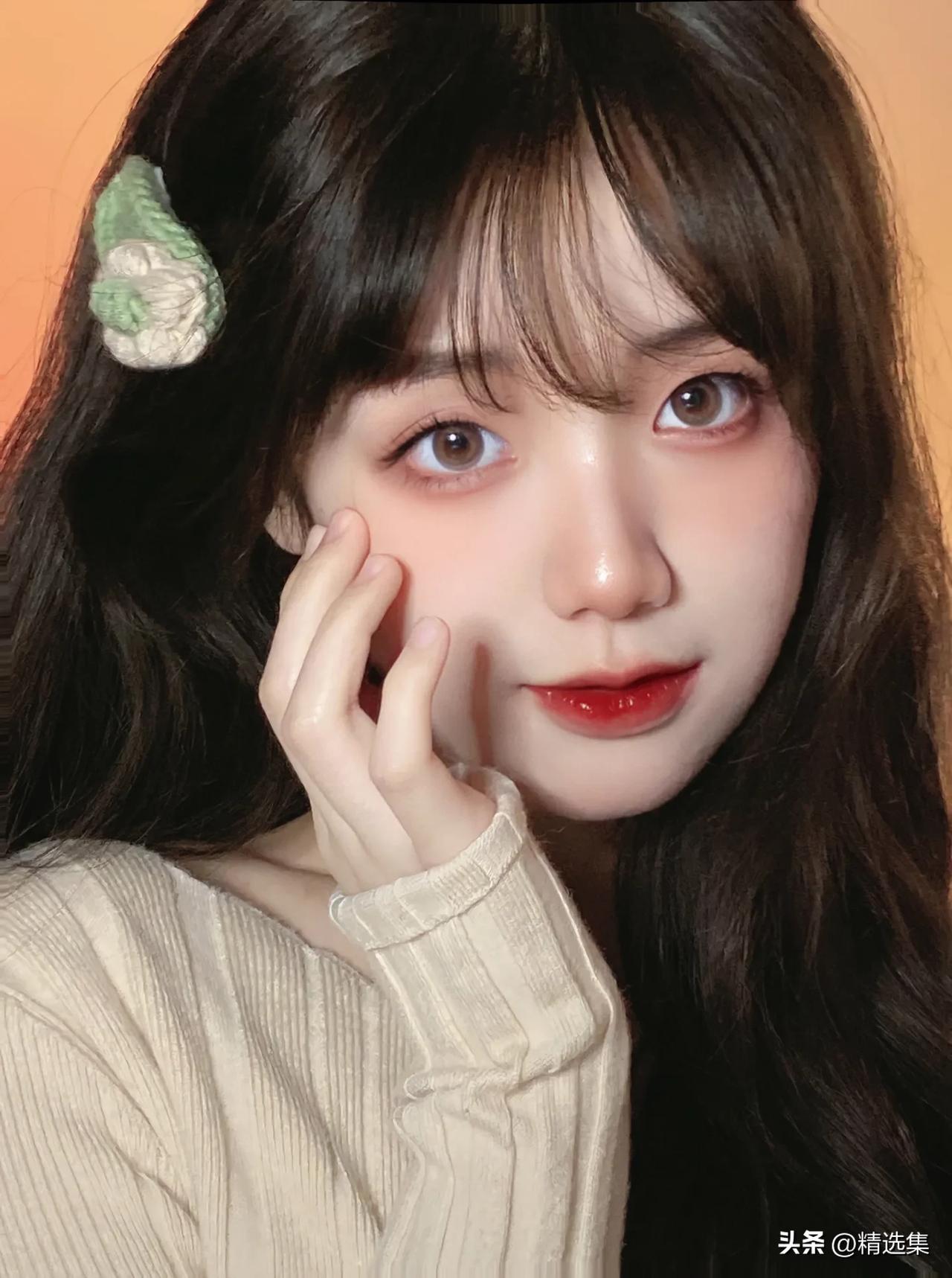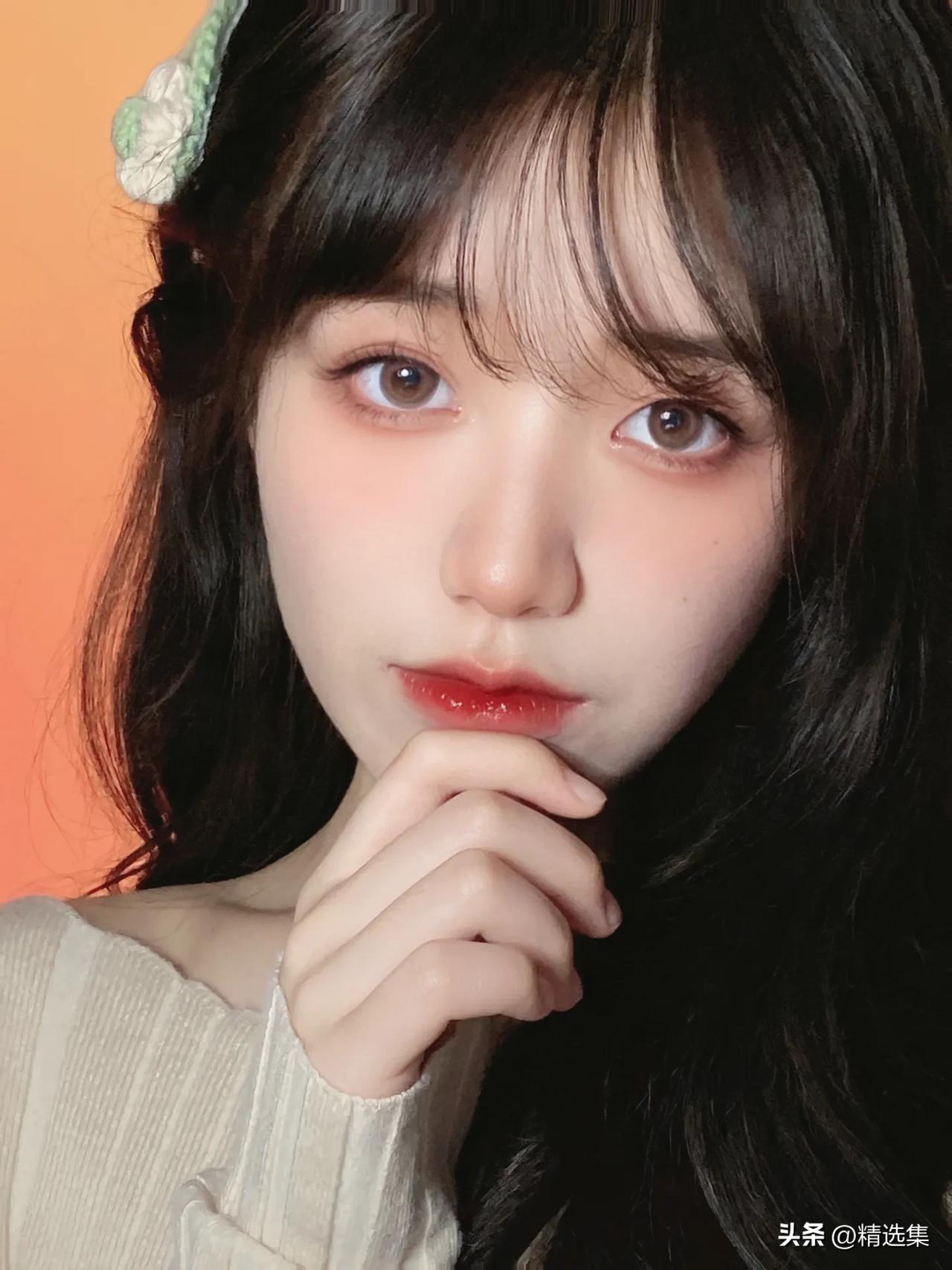 温柔甜美的少女,轻抚脸颊,散发着青春的气息。