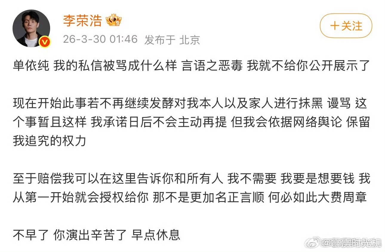在我睡觉的时候,单依纯再发道歉和李荣浩的回应
