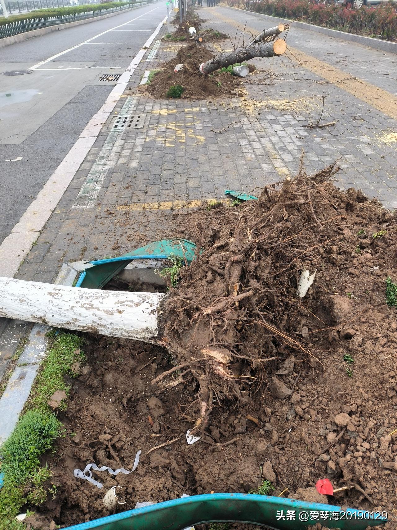 这一幕真是让人心疼,春天本是万物复苏、树木抽枝发芽的季节,本该生机勃勃的马路边,却横七竖八地躺着被连根拔起的树。 这些树并不是特别粗,目测直径也就十几公分。树干上还残留着新栽时的白色防护漆,显然栽种了没几年,应该正是长身体的时候,却被挖掘机无情地连根挖出。当然,它们可能会被重新栽种在另外一个地方,不过看着斩断、撕裂的树根,就像被撕裂的伤口,显得格外心疼。旁边散落的垃圾和翻起的泥土,也更添了几分狼藉。 不知道这些树木犯了什么错,亦或是碍了谁的眼,曾经的它们是路边的风景,是鸟儿栖息的家园。这些本该茁壮成长的小树,还没来得及撑起一片绿荫,就提前结束了使命。这不仅是树的悲哀,更是这个城市的悲哀!