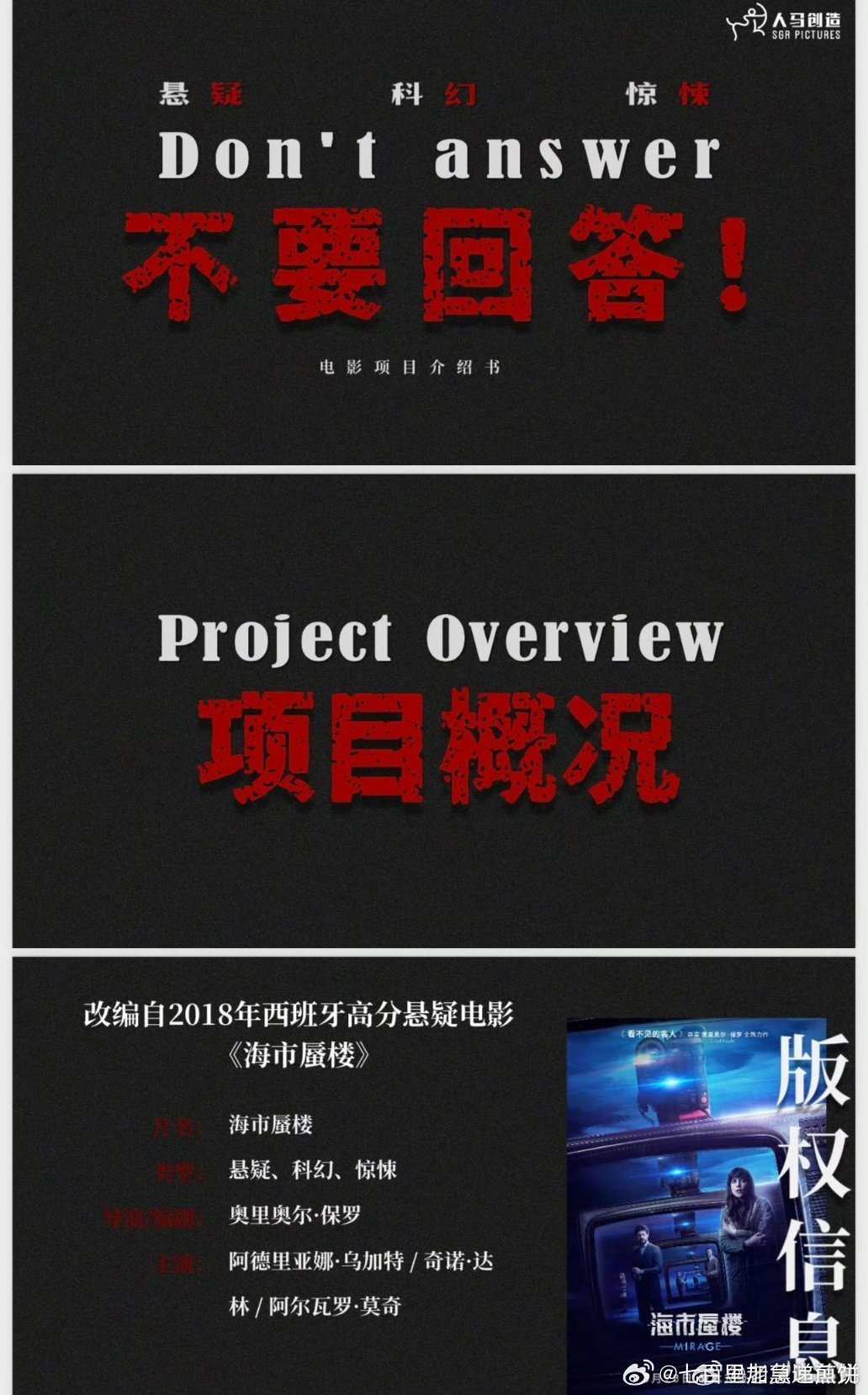 柠萌要翻拍西班牙高分电影《海市蜃楼》了,改名成电影《不要回答》导演/编剧:刘翔《