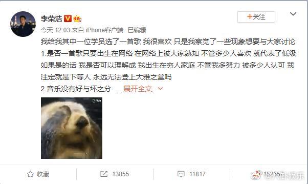 李荣浩 民选微博King全网票选李荣浩为民选微博King!日常怼物业、守版权、说