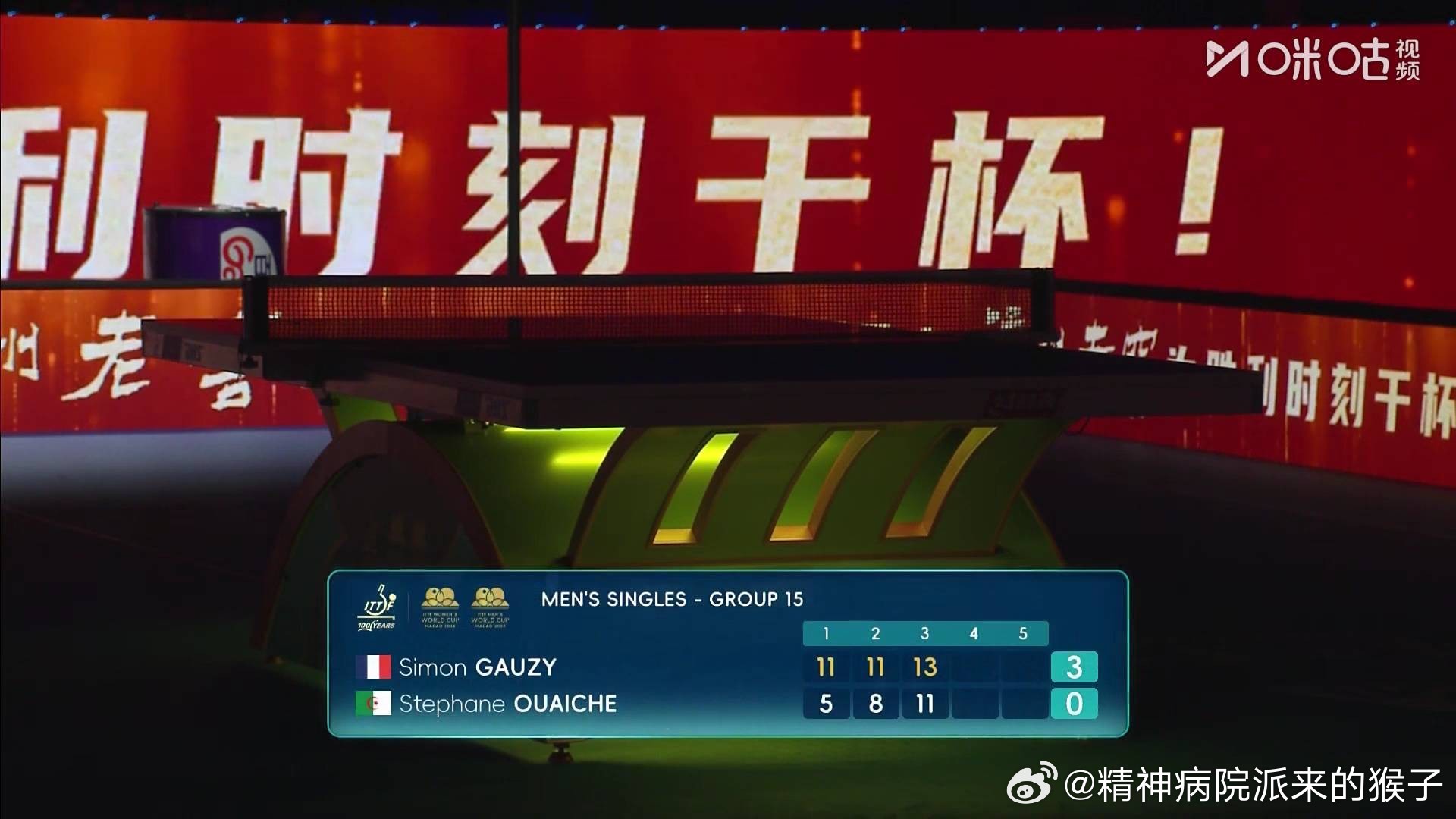 西蒙高茨3比0乌瓦切(5,8,11)2026年澳门乒乓球世界杯男单小组赛第15组目前一胜零负
