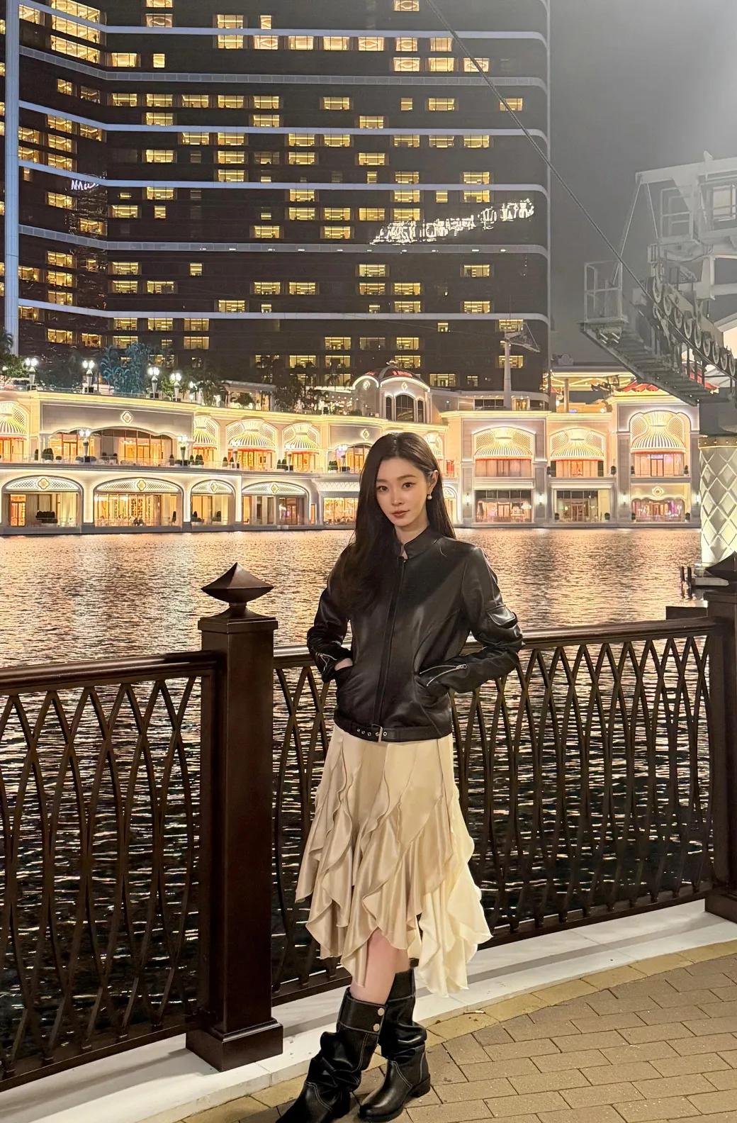 宋轶私服穿搭太会了✨ 宋轶这套黑皮衣+不规则半裙的搭配,把甜酷与温柔平衡得刚刚好! 硬朗的黑色皮衣中和了缎面裙的柔美,不规则荷叶边设计灵动又飘逸,搭配堆堆靴,甜酷感拉满,日常出街或约会都超合适。 宋轶 宋轶私服 皮衣穿搭 不规则半裙