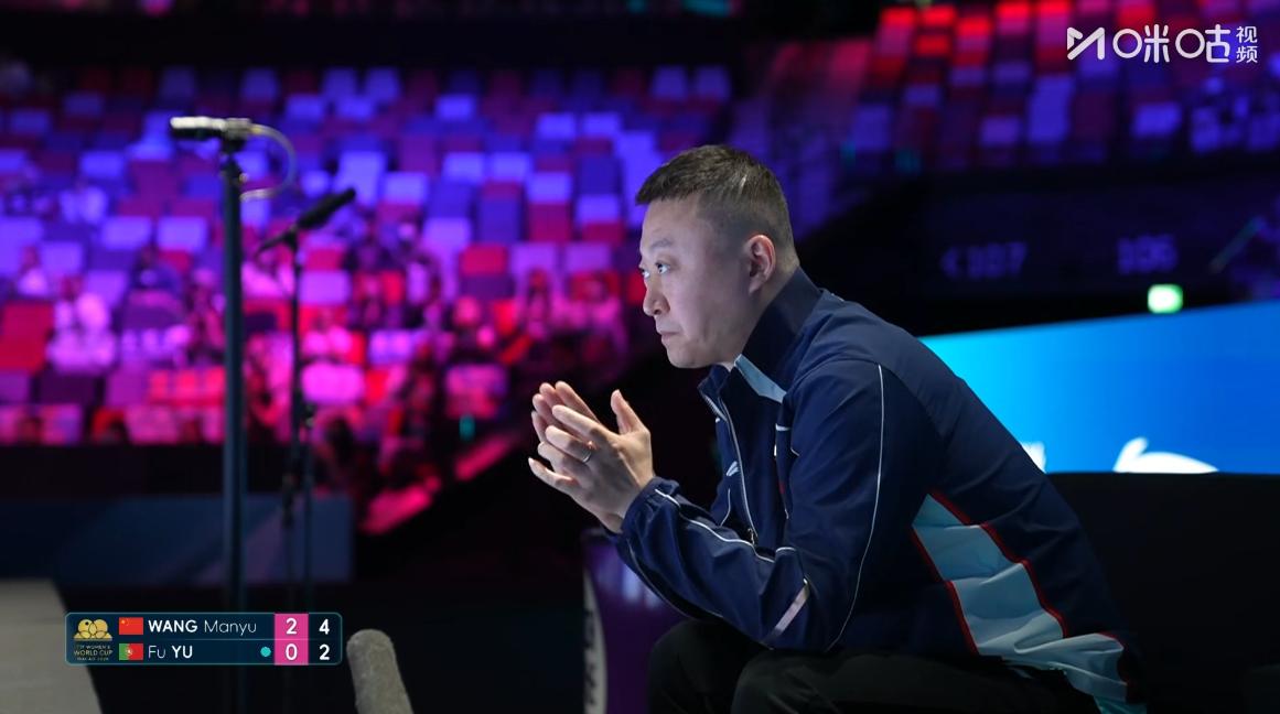 为何曼昱的比赛是马琳做场外指导, 而同同的比赛就换成了任浩, 难道任浩不做曼昱的主管教练了? 其实不能怪任浩, 国乒有规定, 当主力球员比赛时, 场外指导要换成主教练, 这也是为了保证不出现意外情况, 不过感觉还是任浩教练更适合曼昱, 重庆冠军赛上就是马琳担任曼昱的指导, 结果被大藤沙月3-0横扫, 当时如果换成任浩教练, 结果不会输的这么惨, 任浩教练把控节奏的能力非常强, 而且也更了解场上球员的心理状态, 这场比赛决胜局陈幸同被追到10:8时, 任浩就果断叫了暂停, 立马安排发球战术, 最终帮助同同11:8锁定胜局