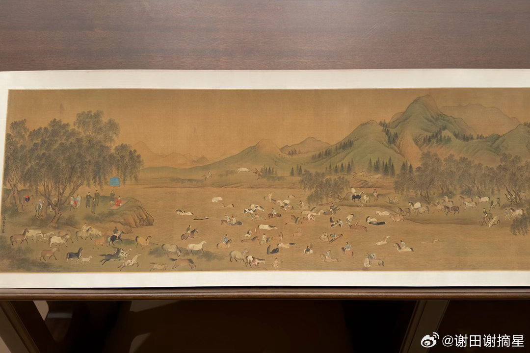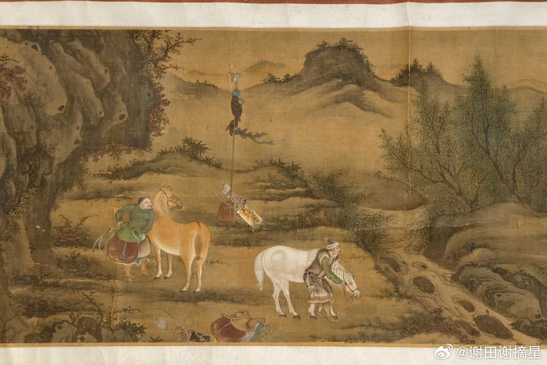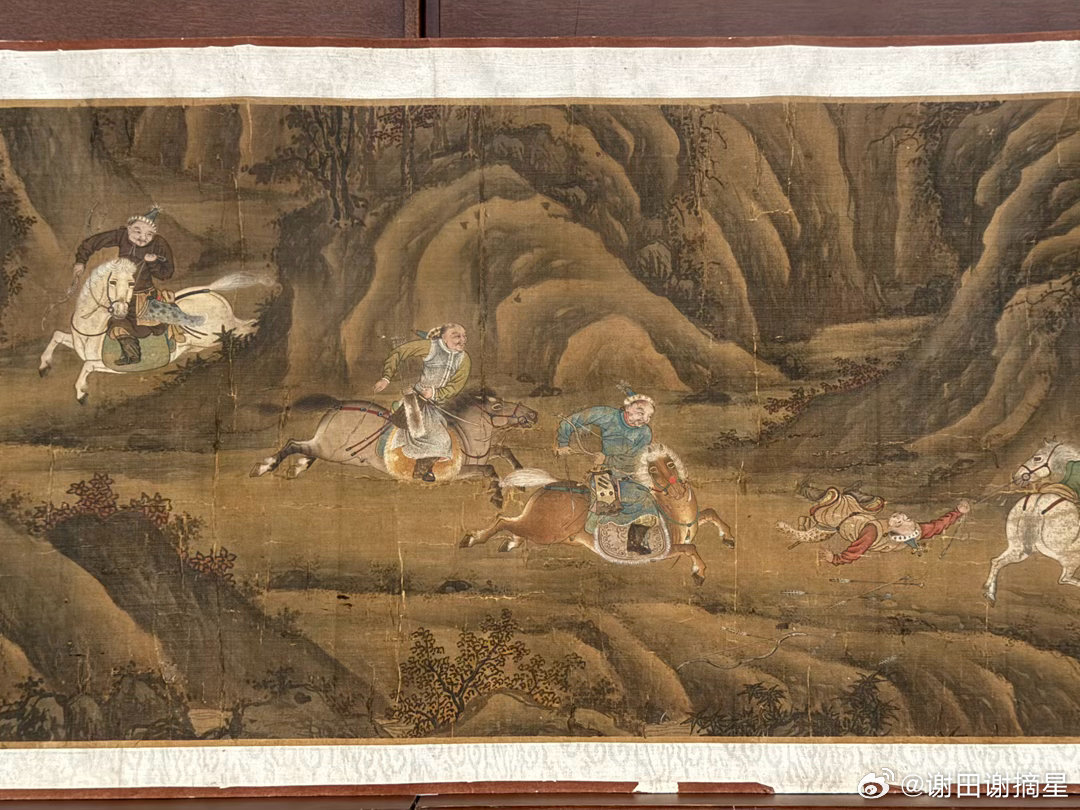 合影的是元代狩猎图。谢田看宝