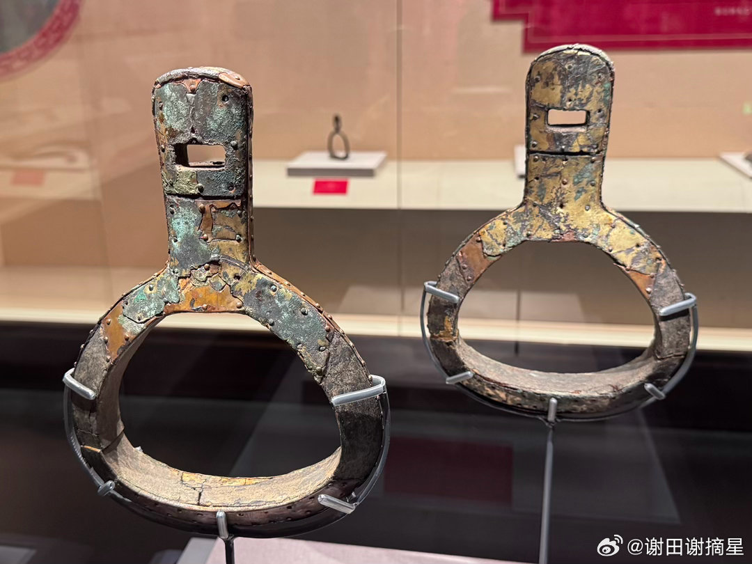 马主题展览,招牌是北燕时期的鎏金铜木芯马镫,出土于辽宁北票西官营子冯素弗墓,年代为北燕太平七年(公元415年),是迄今为止有明确年代可考的完整双马镫实物,也是中国乃至世界上最早的骑乘用马镫实物。