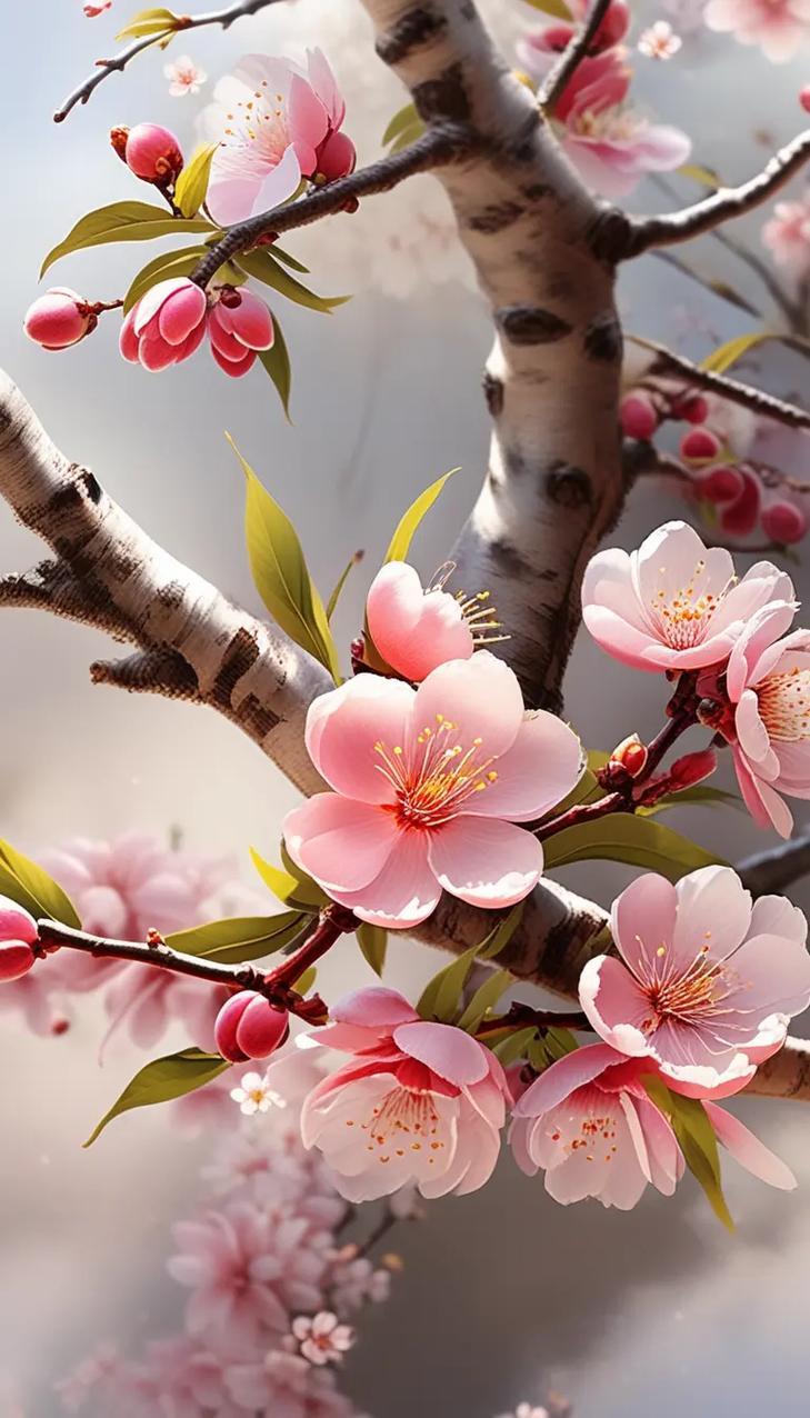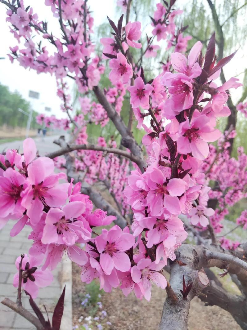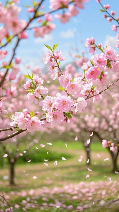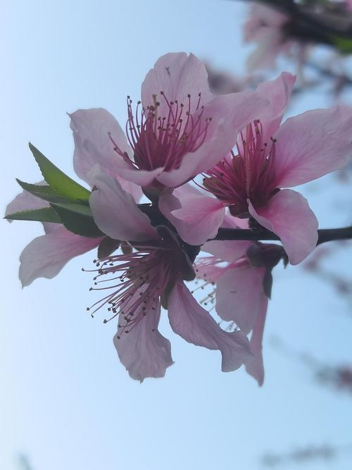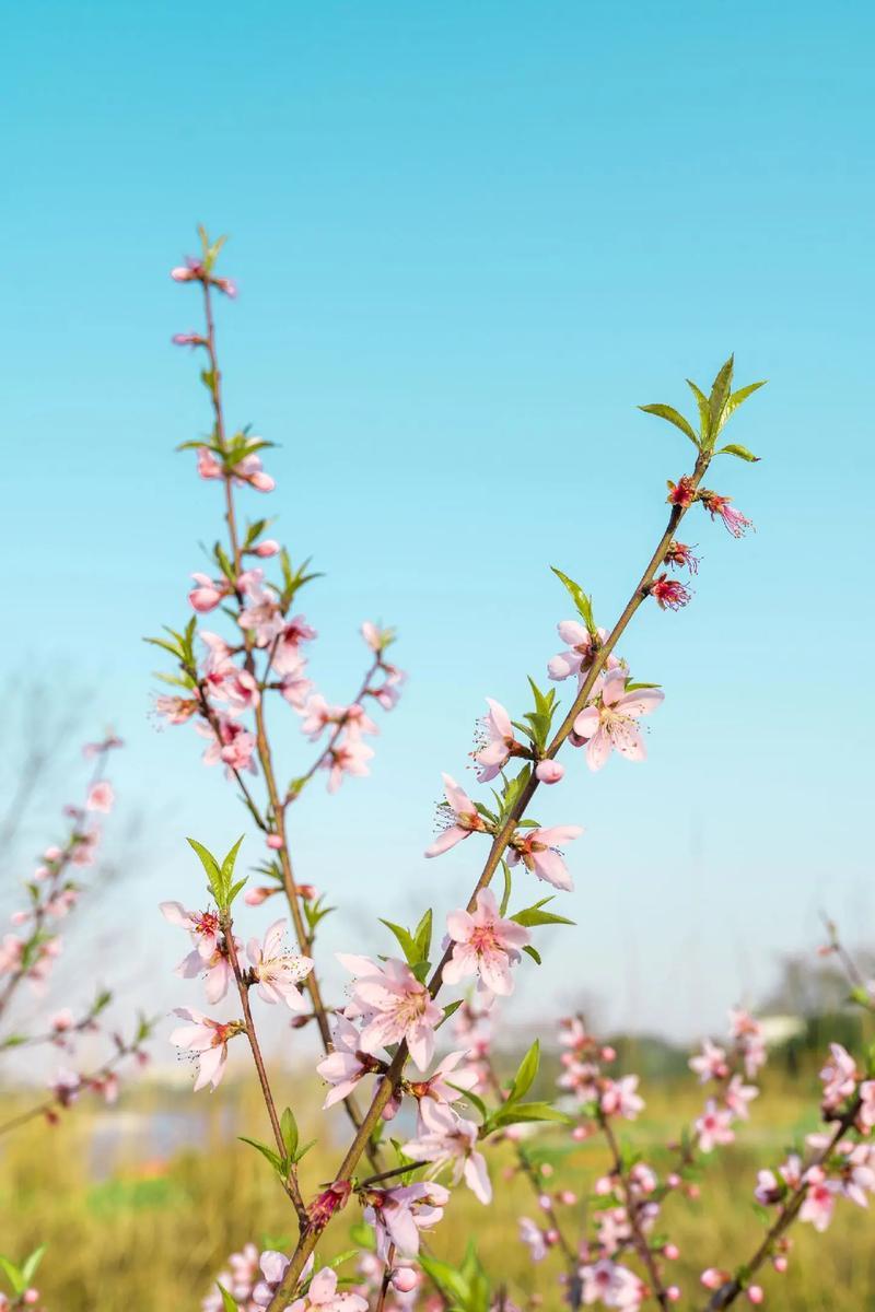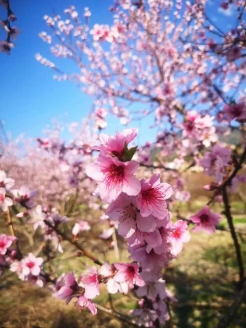 桃花盛开,春意盎然,蓝天映衬,美不胜收!🌸🌞