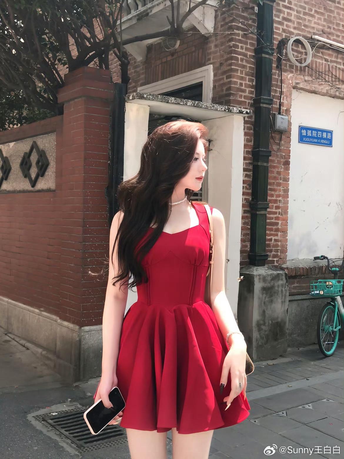 红色吊带皮裙~~