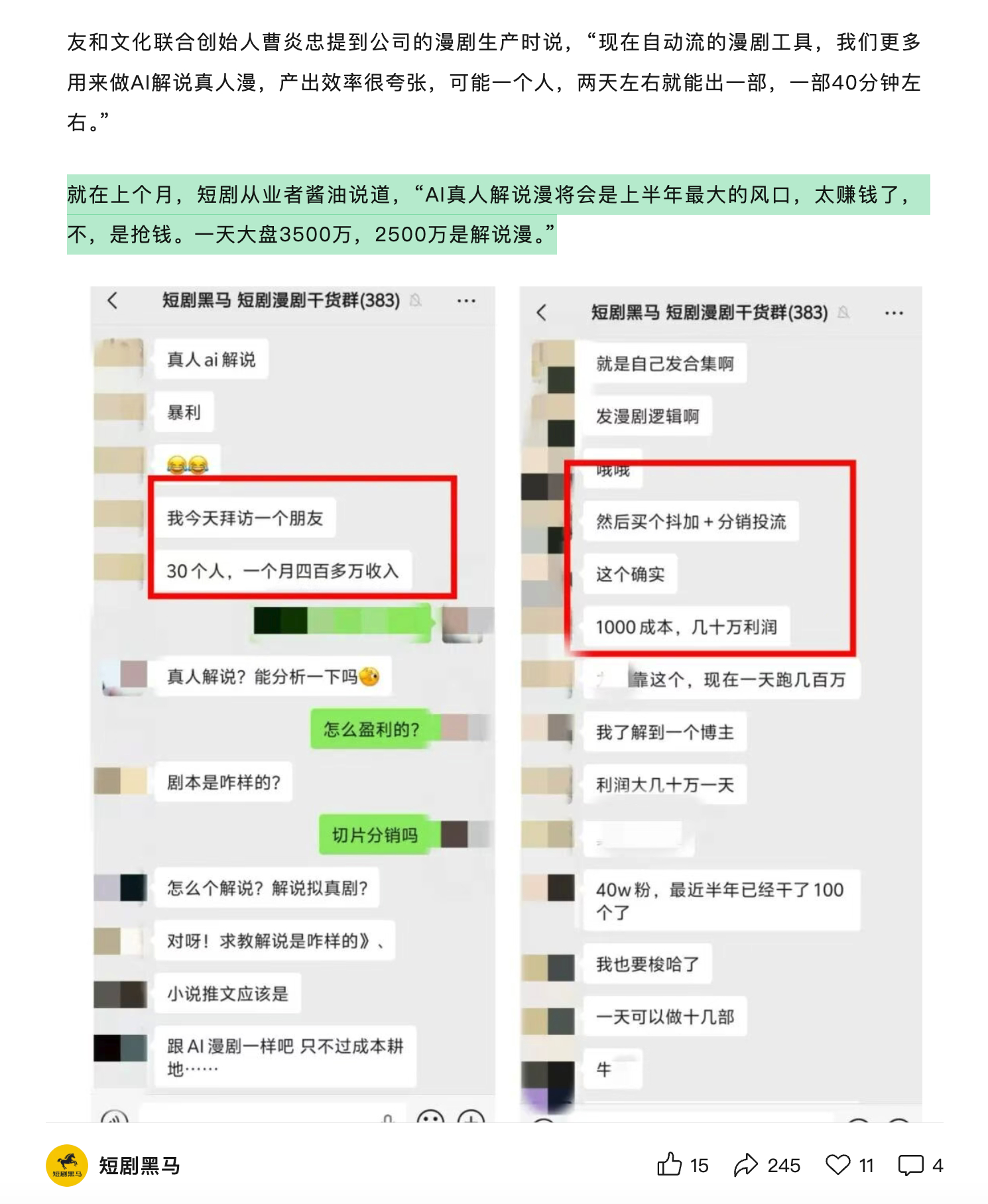 昨天还有人说漫剧挣钱,但那是老板。已经卷烂了的解说漫,劳工只能给到 12 元/分