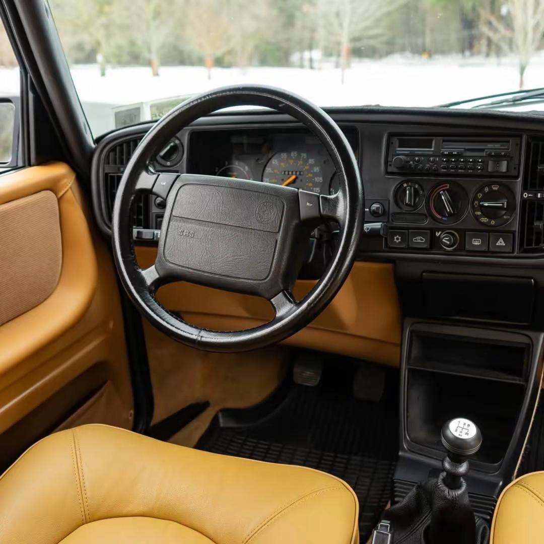 1993年的 Saab 900 Turbo 掀背车,处在品牌最具个性与工程执念的巅峰阶段,而这台 Commemorative Edition,则是为这一代车型收官而生的纪念之作。全球仅约 325 台的产量,让它从诞生之初就带有收藏属性。整车以黑色车身搭配棕色内饰,呈现出典型的北欧冷峻与克制之美。动力来自一台 2.0 升涡轮增压直列四缸发动机,匹配五速手动变速箱,输出平顺而富有韧性,在当年已具备不俗的性能表现。配置层面,这台车拥有15英寸三辐纪念版轮圈、前后扰流板、空调、定速巡航、电动车窗以及带加热功能的电动座椅,同时配备 Blaupunkt 音响系统,兼顾实用与驾乘体验。值得一提的是,原厂电动天窗被改为手动结构,这种带有“人为痕迹”的变化,反而让车辆更具故事感。在90年代,Saab 并不追求浮夸的豪华或极致速度,而是用独特的设计语言与航空工程理念,塑造出一种理性而执着的驾驶哲学。今天回看,这种不迎合主流、却始终自洽的气质,正是 Saab 900 Turbo 最打动人的地方。萨博900 经典情怀老车 汽车知识分享 真实生活分享计划
