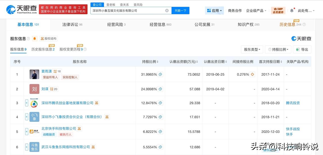 【PDD参股的小象互娱被执行1417万 PDD持股一公司被执行1417万】 天眼查法律诉讼信息显示,近日,深圳市小象互娱文化娱乐有限公司及旗下武汉颜值星秀传媒有限公司新增一则被执行人信息,执行标的1417万余元,执行法院为上海市浦东新区人民法院。 深圳市小象互娱文化娱乐有限公司成立于2017年1月,法定代表人为窦雨潇,注册资本约228万人民币,经营范围含商务咨询、市场信息咨询与调查、文化活动策划、市场营销策划、企业形象策划、礼仪服务、影视活动策划等。股东信息显示,该公司由窦雨潇、刘谋(PDD)、深圳市腾讯创业基地发展有限公司等共同持股,其中,PDD持股约25%。 天眼查信息: