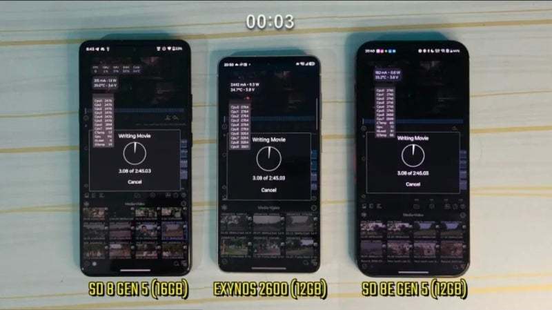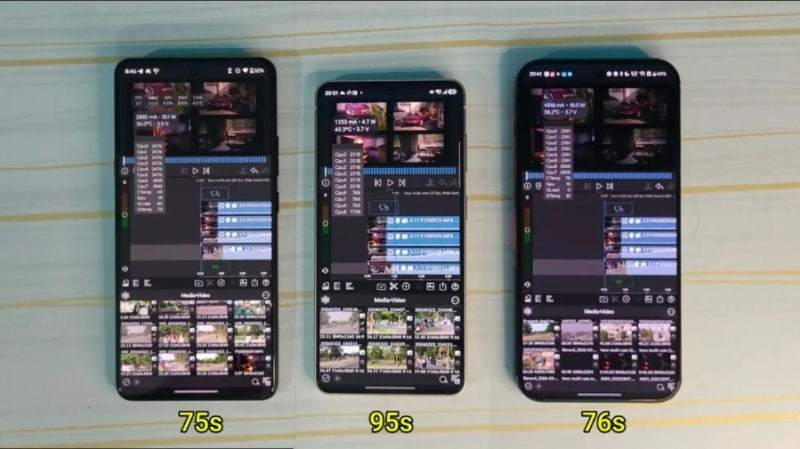 视频渲染这类偏多核的任务,本来应该是 Exynos 架构的优势区间,但测试显示其高频维持能力不足,无法长时间稳定在理想频率上运行,最终导致效率仍然落后于对手。换句话说,架构潜力有,但没有被有效释放出来