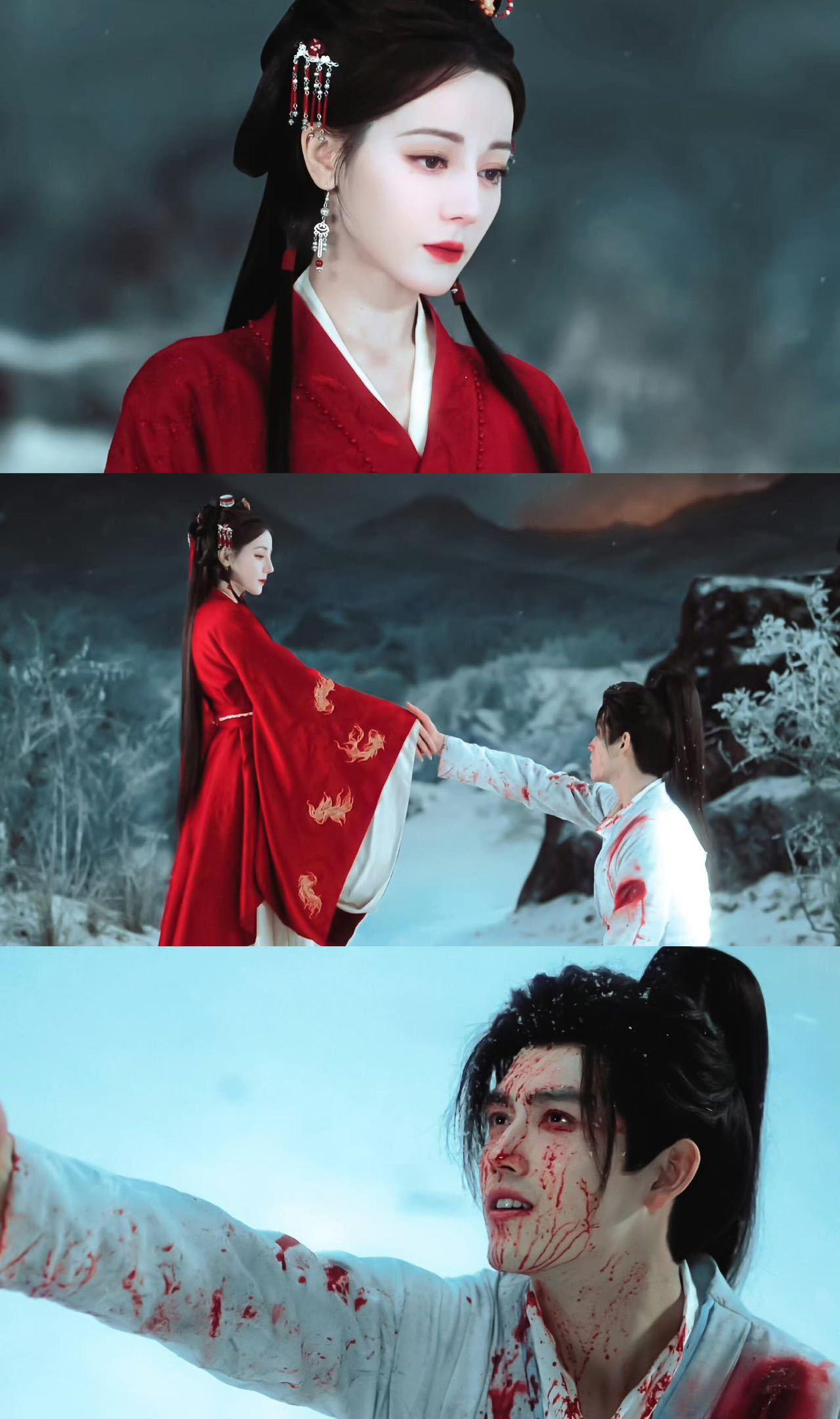 《白日提灯》第8集30分5秒,这段直接看哭了 真的要被《白日提灯》第8集这段戳死了,尤其是30分5秒这个镜头,看完半天缓不过来,太好哭了。 本来前面剧情还挺平缓的,结果到这段直接封神。段胥浑身是伤,在雪地里撑不住倒下去,走投无路只能赌一把,朝着贺思慕伸手,想跟她结生死契,连五感都愿意交出去。 漫天大雪飘着,贺思慕穿一身红站在那儿,本来她是没五感、没情绪的人,活了四百年冷冷淡淡的,结果这一刻眼神居然有了波动,两人指尖碰到一起的时候,咒文亮起来,宿命感直接拉满。 没什么多余的情话,也没刻意煽情,就靠画面和演员的眼神,把那种绝境里的救赎、孤寂里的牵绊全演出来了,配乐也刚刚好,看得我鸡皮疙瘩都起来了。 说实话,现在古偶能拍出这种质感的名场面真的不多,没有乱七八糟的特效堆砌,每一处细节都戳人,就这一个片段,直接让我对这部剧改观了,越看越上头,谁还没看这段我都会伤心的OK?