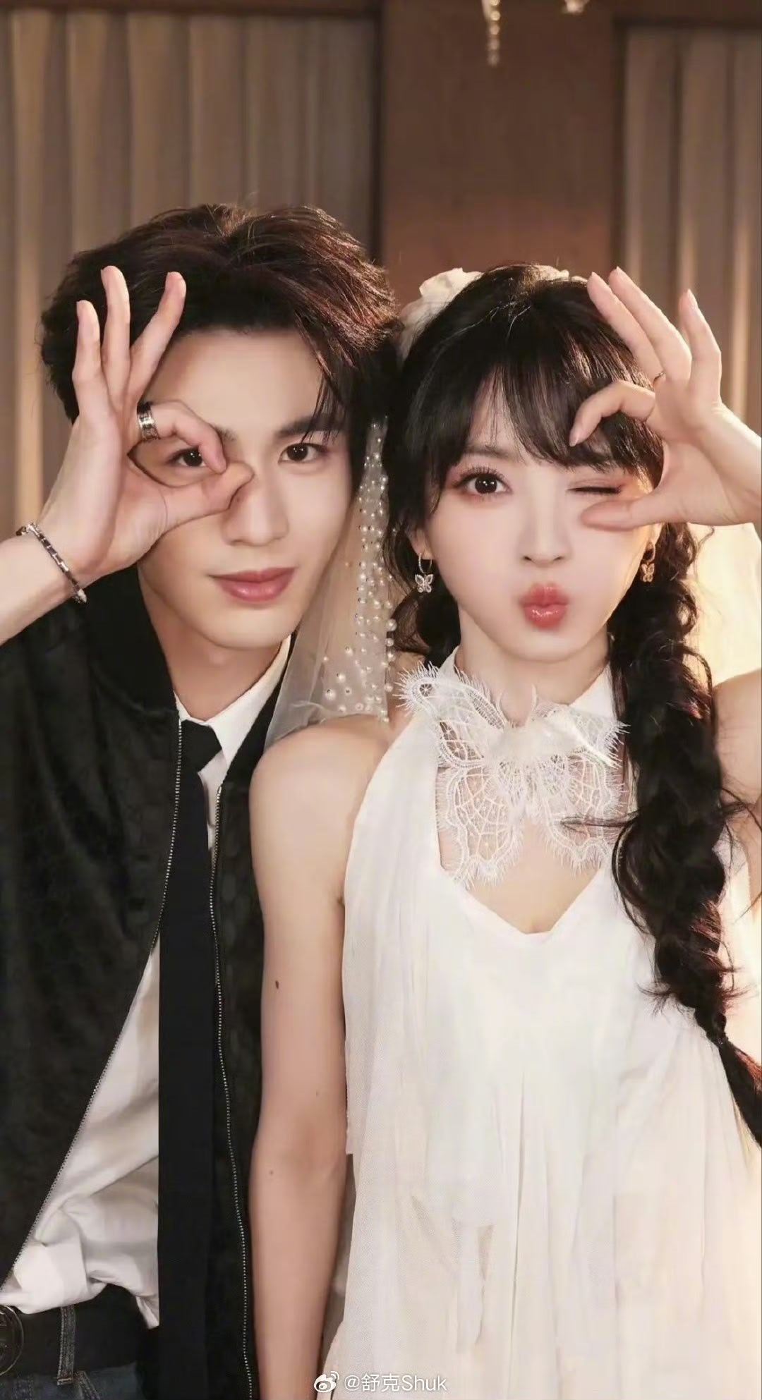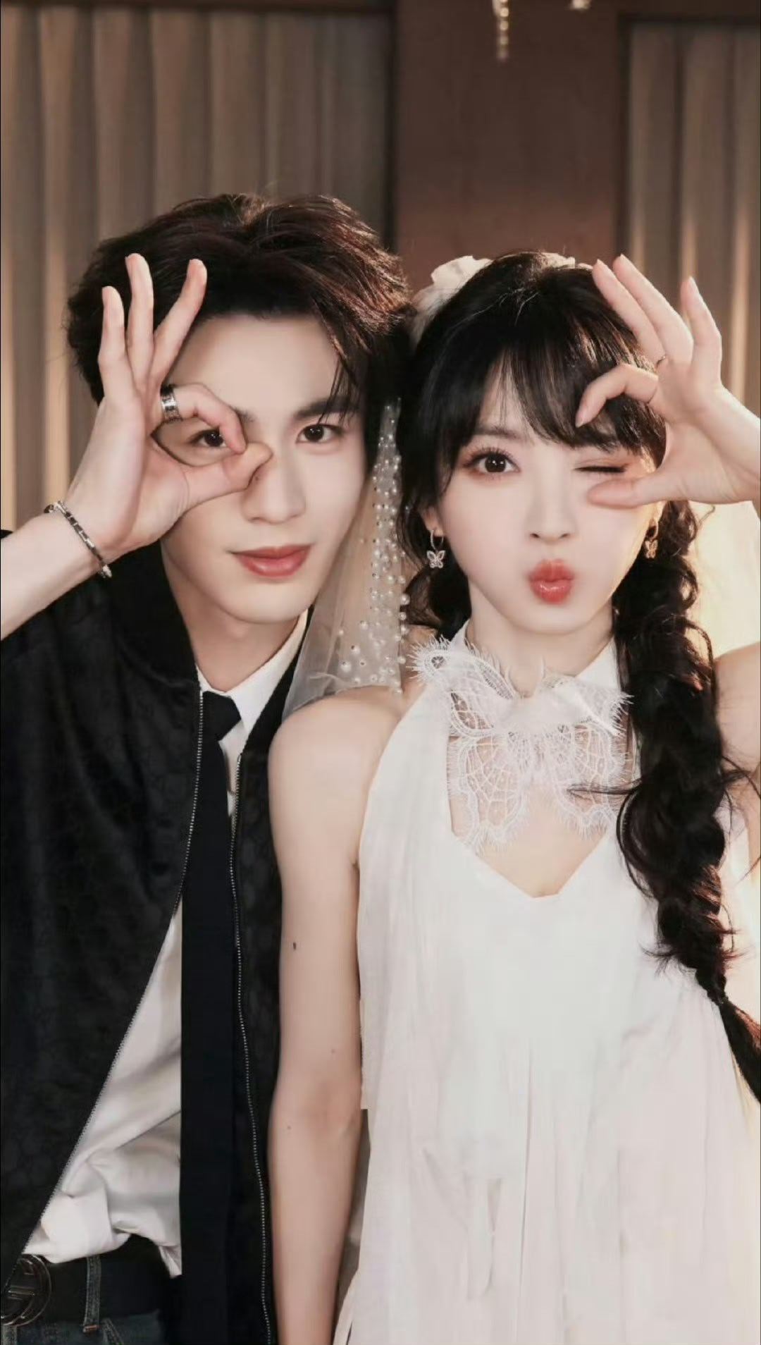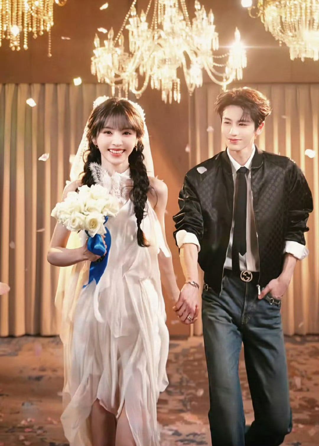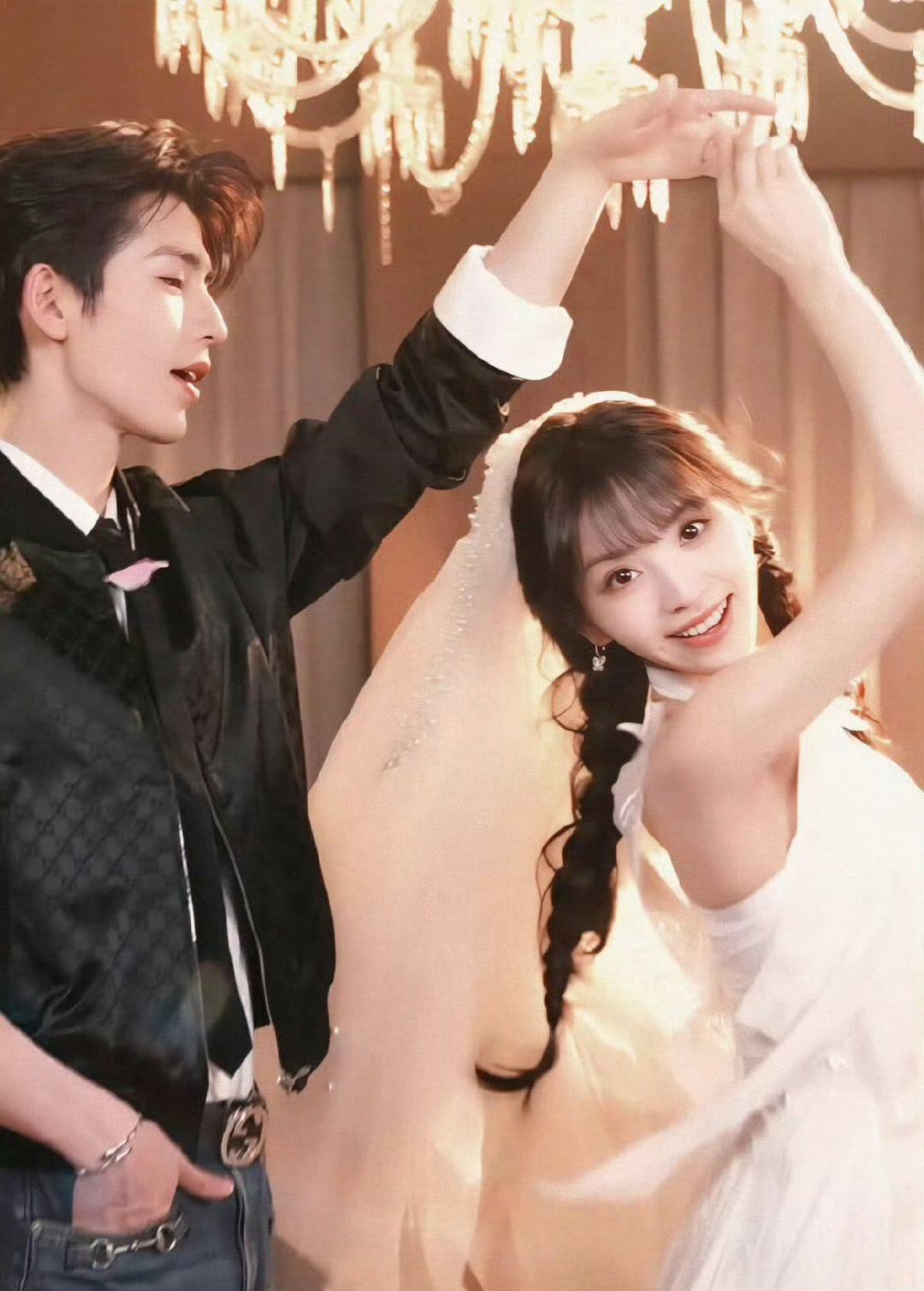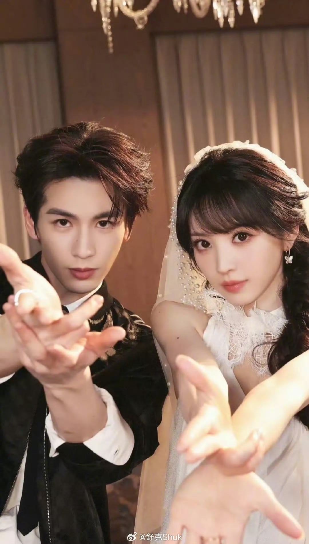 田曦薇晒与张凌赫头纱合照 田曦薇和张凌赫的头纱合照太有感觉了,头纱的柔美与