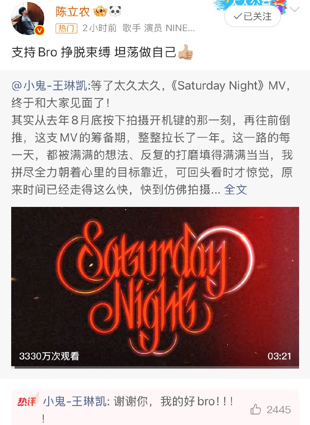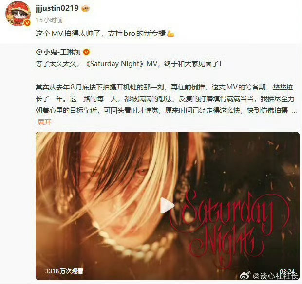 小鬼圈内人脉小鬼人脉谁懂啊!小鬼新MV《Saturday Night》一上线,内娱半个好友圈都来打call了!王子异、朱正廷、范丞丞、黄明昊、陈立农集体转发,这神仙兄弟情太好嗑了