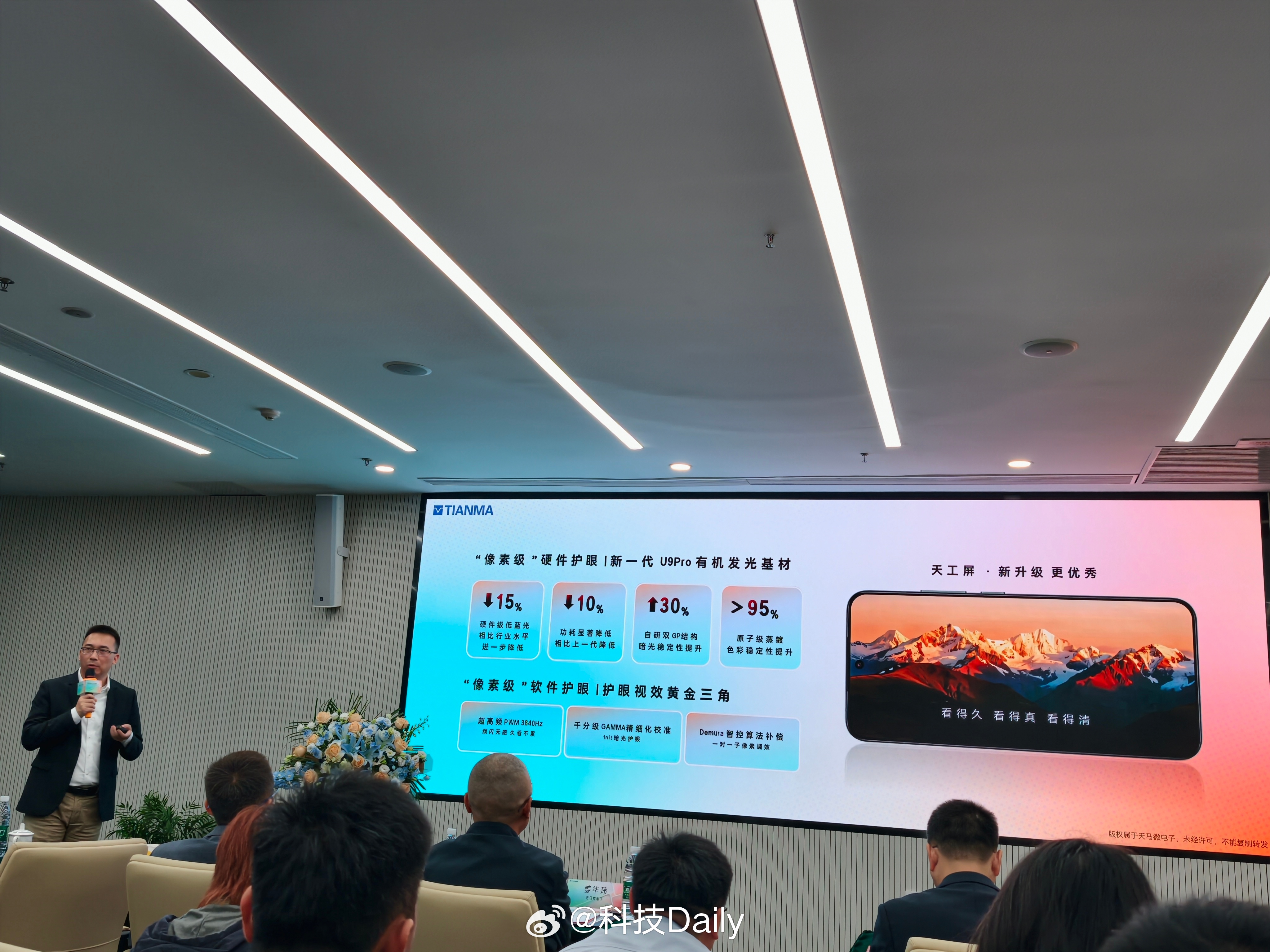 来!看像素级护眼好屏。天马“像素级”硬件护眼,新一代U9 Pro有机发光基材,好