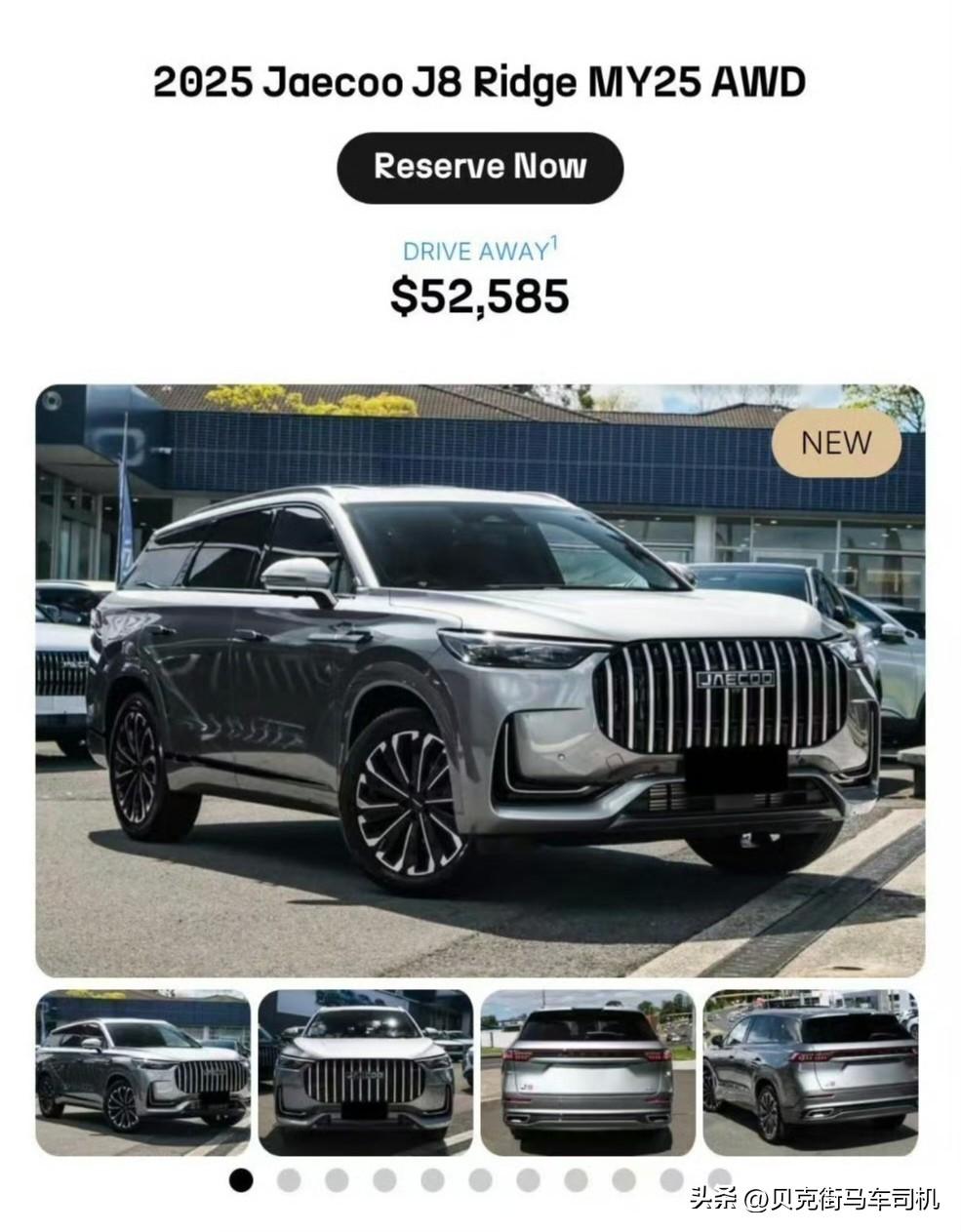 没人比奇瑞更懂起名字了,在澳洲售卖的瑞虎9,命名为J8。 搭载2.0升涡轮增压直列四缸汽油发动机。 功率:约249马力(245匹/183千瓦) 扭矩:385牛·米。 变速箱:8速自动变速箱 2WD(5座):前轮驱动 AWD(6座):带智能扭矩矢量分配的全时四轮驱动。 说实话,奇瑞的车,真的是墙内开花墙外香。 在国内销量中规中矩,出口到国外的生意却做的有声有色。 果然,能在国内卷出一条路的车企,在国外都是降维打击。