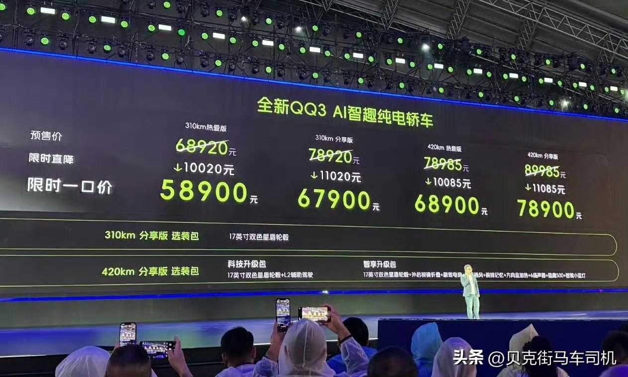 最经典的大灯眼睛不圆了,笑脸没有了,还是QQ吗? 限时5.89万起!奇瑞QQ3 EV上市,售价还是延续20多年前的良心价,当年实现了很多人的轿车梦。 6万不到的价格,空间大,2.7米轴距。颜值也过得去,标配310公里,顶配420公里续航,市场市内通勤够用一星期了,还要什么自行车! 吉利星愿,名爵的MG4,奇瑞QQ,您会怎么选?