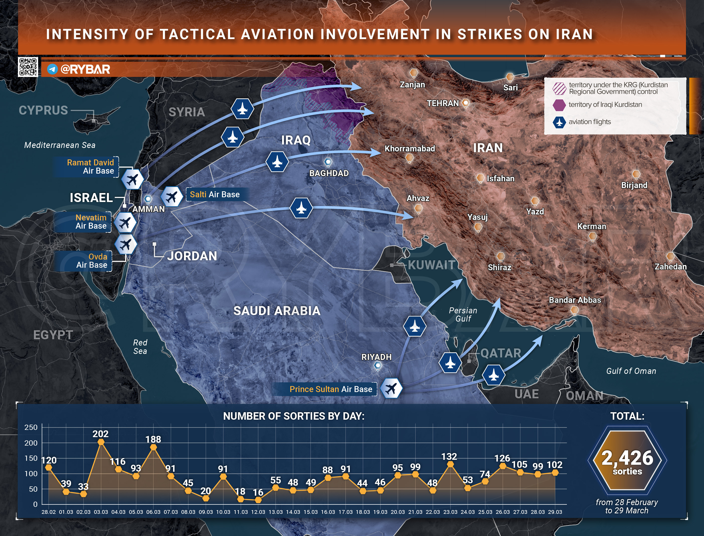 美以联军的空袭架次越来越少,最近甚至要掉到100架次/日以下,开战近一个月总共只有2400多架次,好拉
