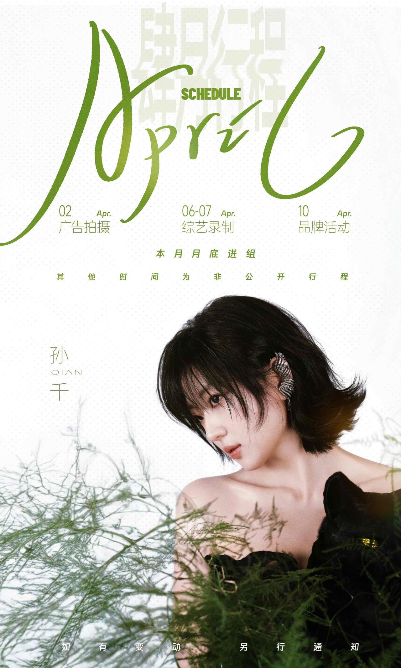 艾米、胡连馨、代露娃、张婧仪、祝绪丹、孙千、哈尼克孜、谭松韵、白鹿、周洁琼、邓恩熙、王玉雯 女明星的一波四月行程图,四月也要多多见面!