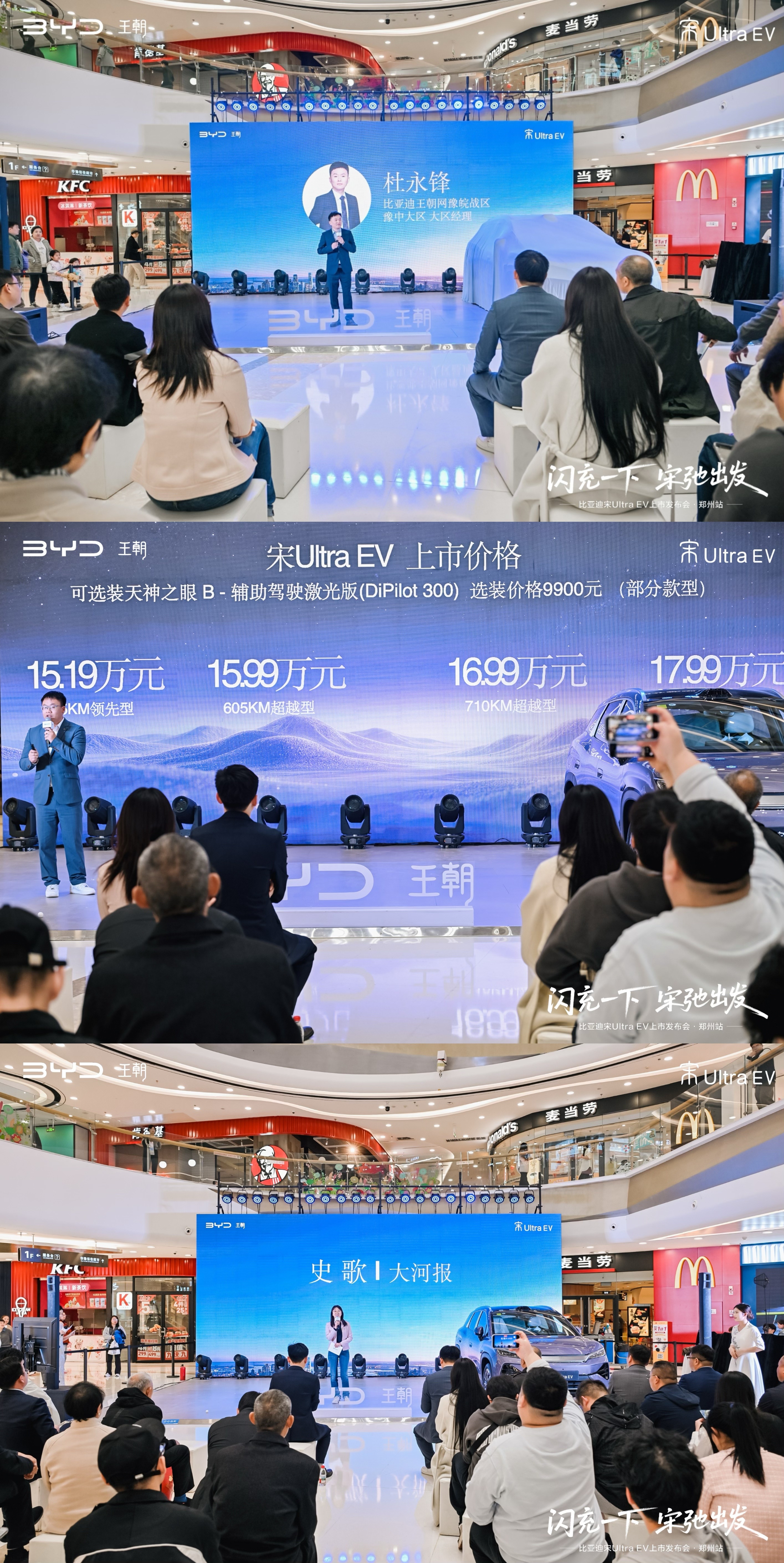 前天晚上,参加了宋Ultra EV的上市品鉴会郑州站活动。作为比亚迪王朝首款闪充SUV,宋Ultra这次是真拿出了“闪充速度+生活温度”的王炸组合。品鉴会现场,乐队、国风舞蹈、茶歇、模特互动轮番上阵,氛围直接拉满,来的媒体、迪友和准车主们都说——这车,是真有料。