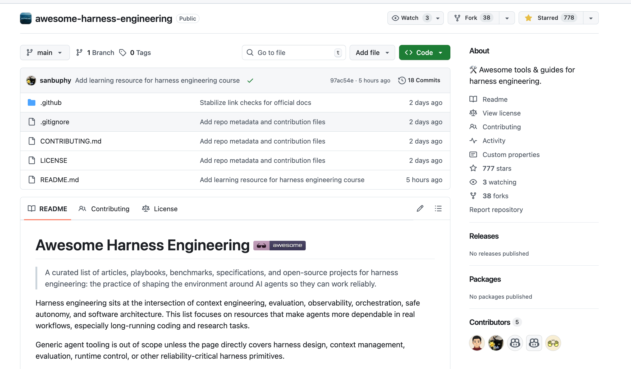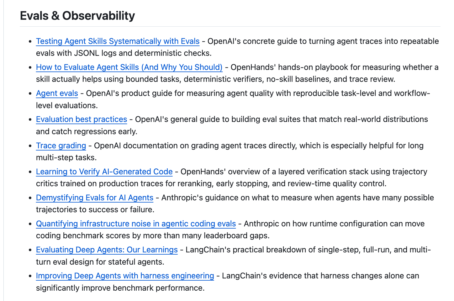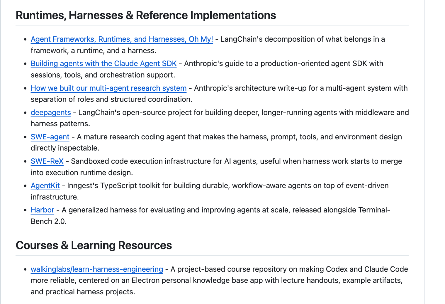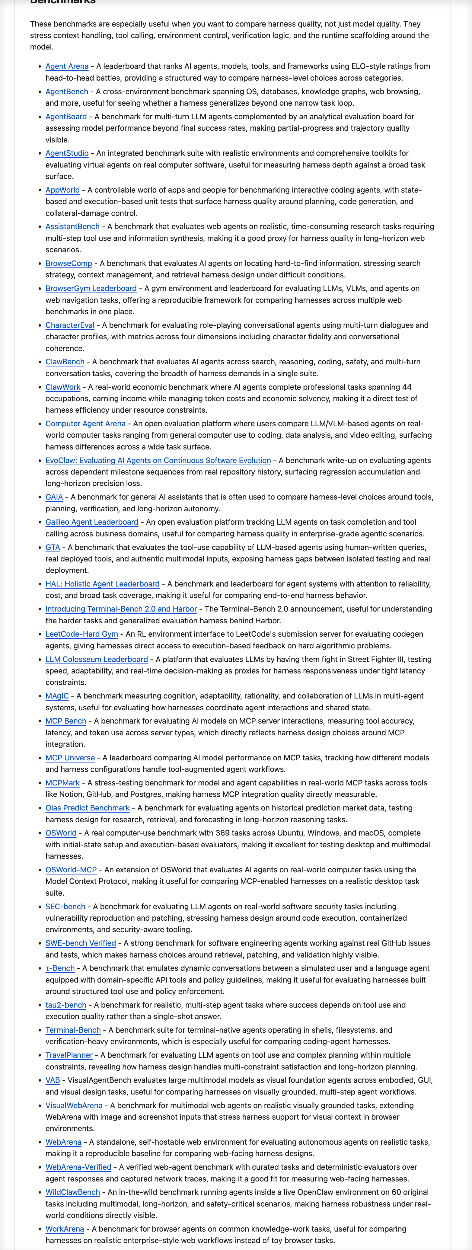 整理的还挺齐全的,关于 Harness Engineering 的精选文章、操作手册、基准测试、规范和开源项目列表,领域内的重要资源都有收录