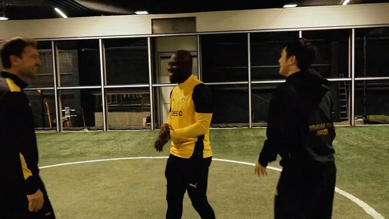 樊振东到访多特蒙德俱乐部,和波尔一起踢足球