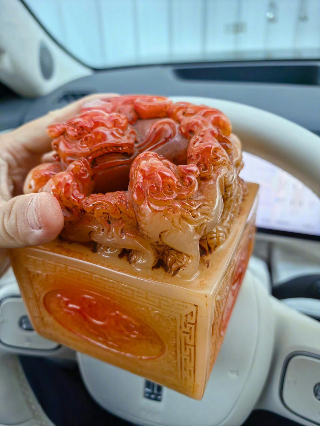 韩路:你们对我尊重点!我现在是有玉玺的人! 你们觉得我这玉玺多少钱买的?哈哈哈。 ​​​ 通过这个玉质和这个雕工,这个东西真实的价值不会超过200元,要是雕工好一点,可能能到个500块钱,不会是880买的吧? 各位是怎么看的?欢迎评论区留言。