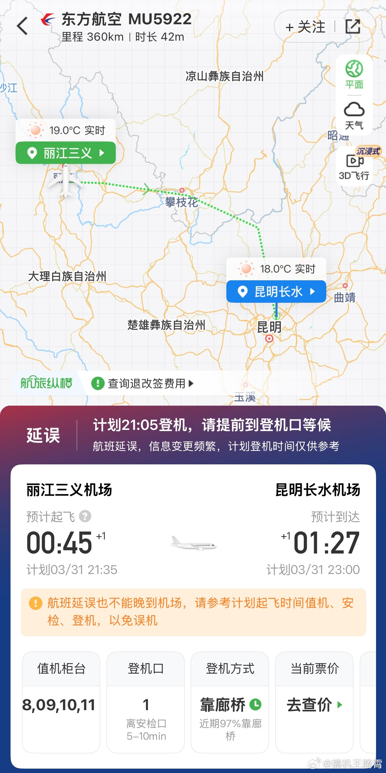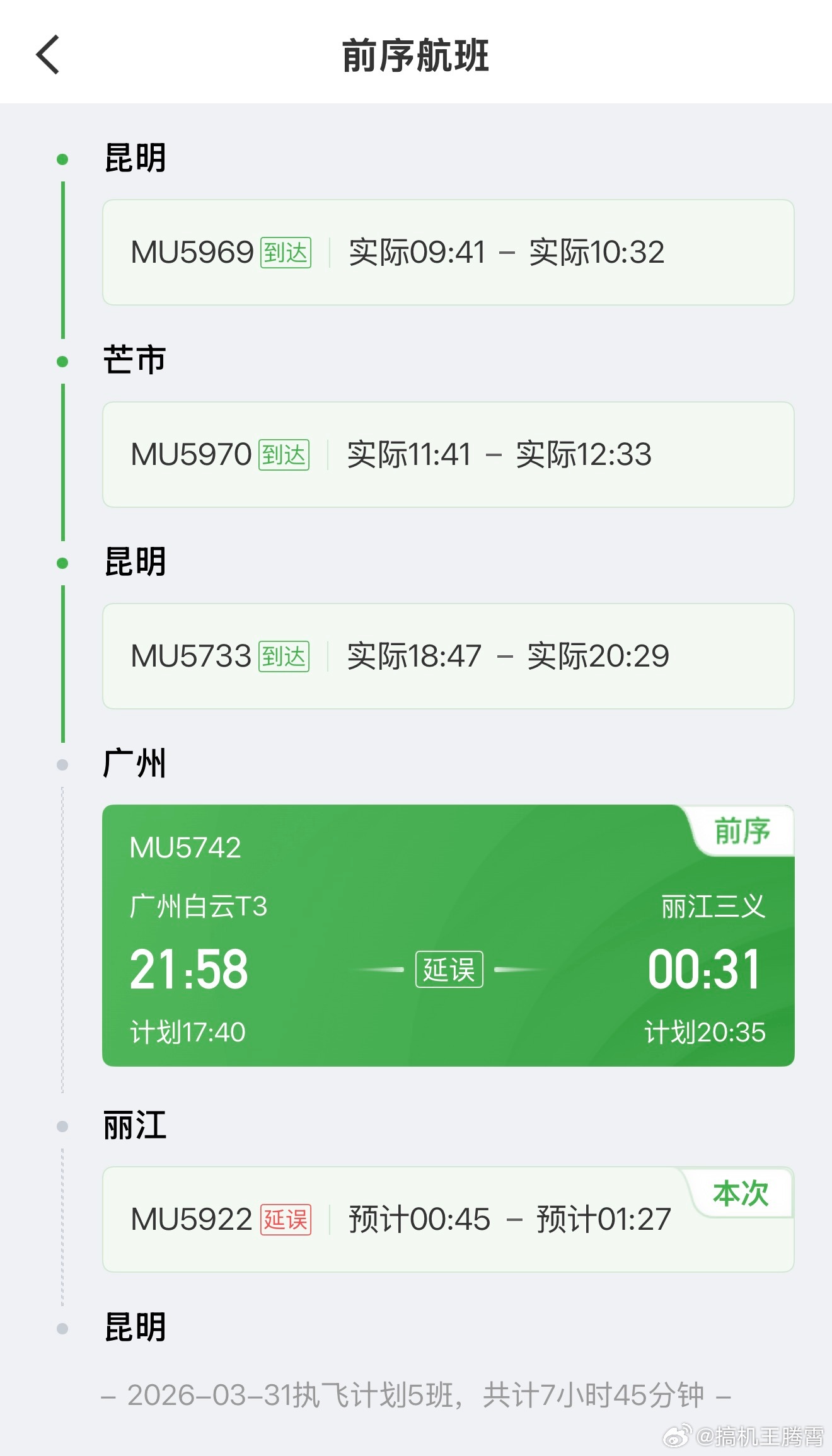 家人们,果真人算不如天算,本想着从丽江飞回昆明最快,只要一小时,因为我开车得五小时,坐高铁最快也得三个半钟头才能到。谁成想因为广州下雨前序延误,导致我这航班直接延误三小时,目前来看很可能要延误四小时,那也就是说,哪怕我开车或坐高铁都能更快到家,绝了
